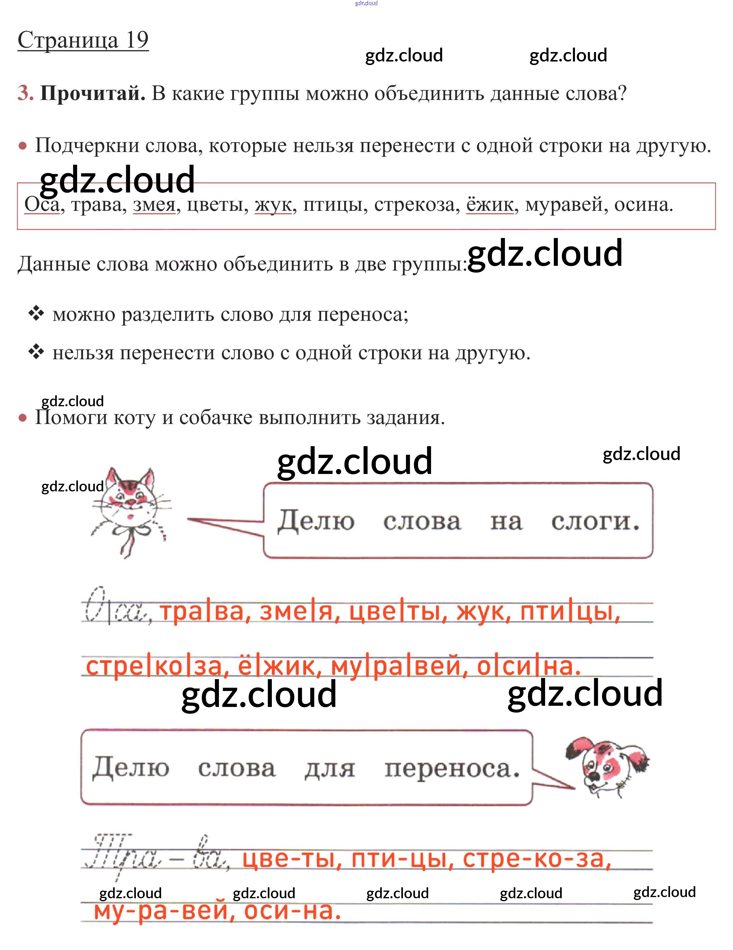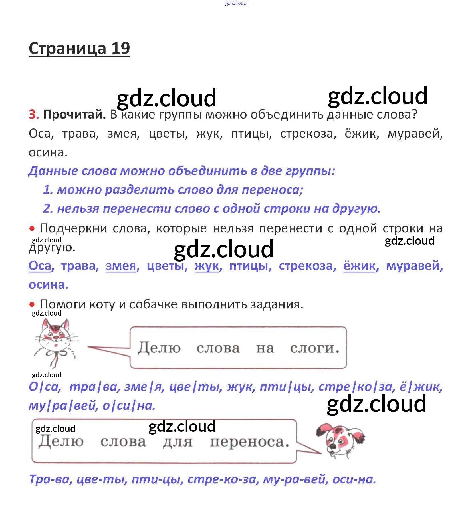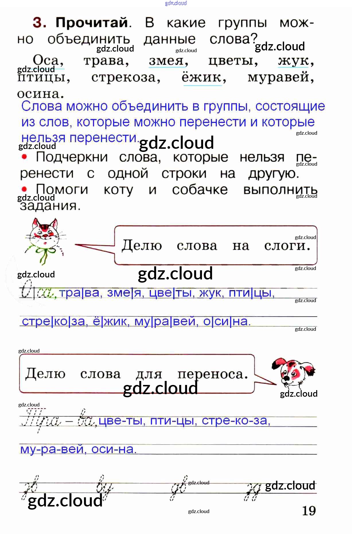 Ответ на задание стр. 19 Рабочая тетрадь Русский язык за 1 (первый) класс Канакина, Горецкий Школа России 2013