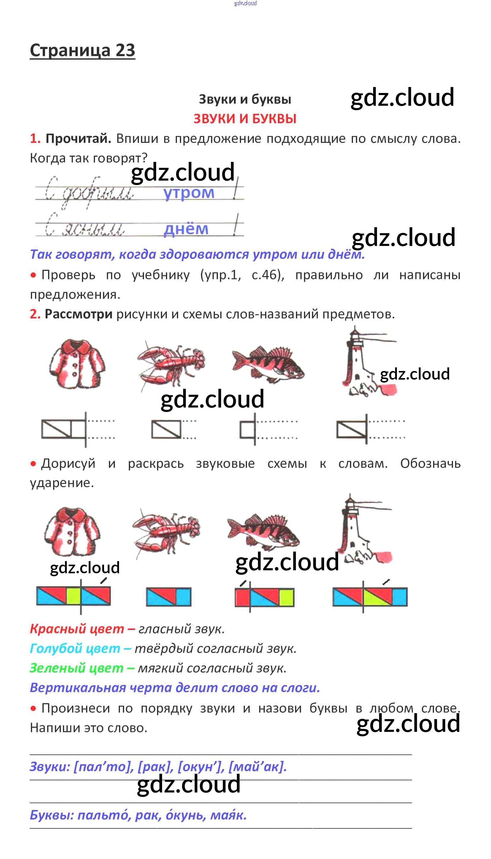 Ответ на задание стр. 23 Рабочая тетрадь Русский язык за 1 (первый) класс Канакина, Горецкий Школа России 2013
