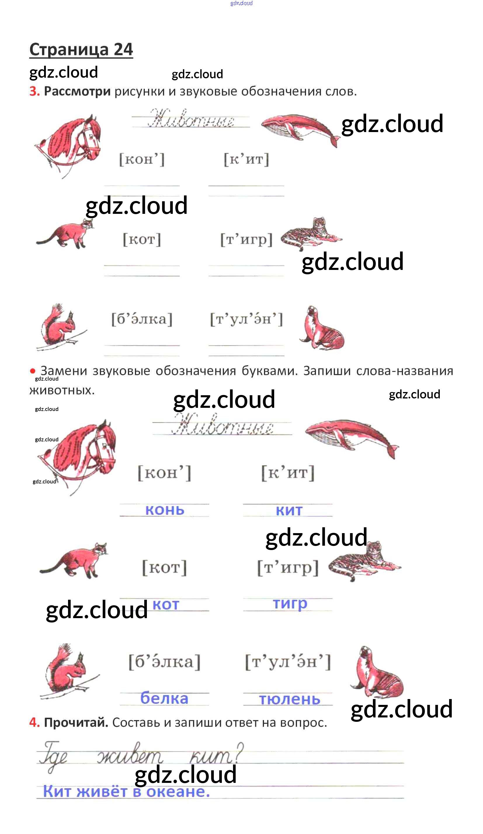 Ответ на задание стр. 24 Рабочая тетрадь Русский язык за 1 (первый) класс Канакина, Горецкий Школа России 2013