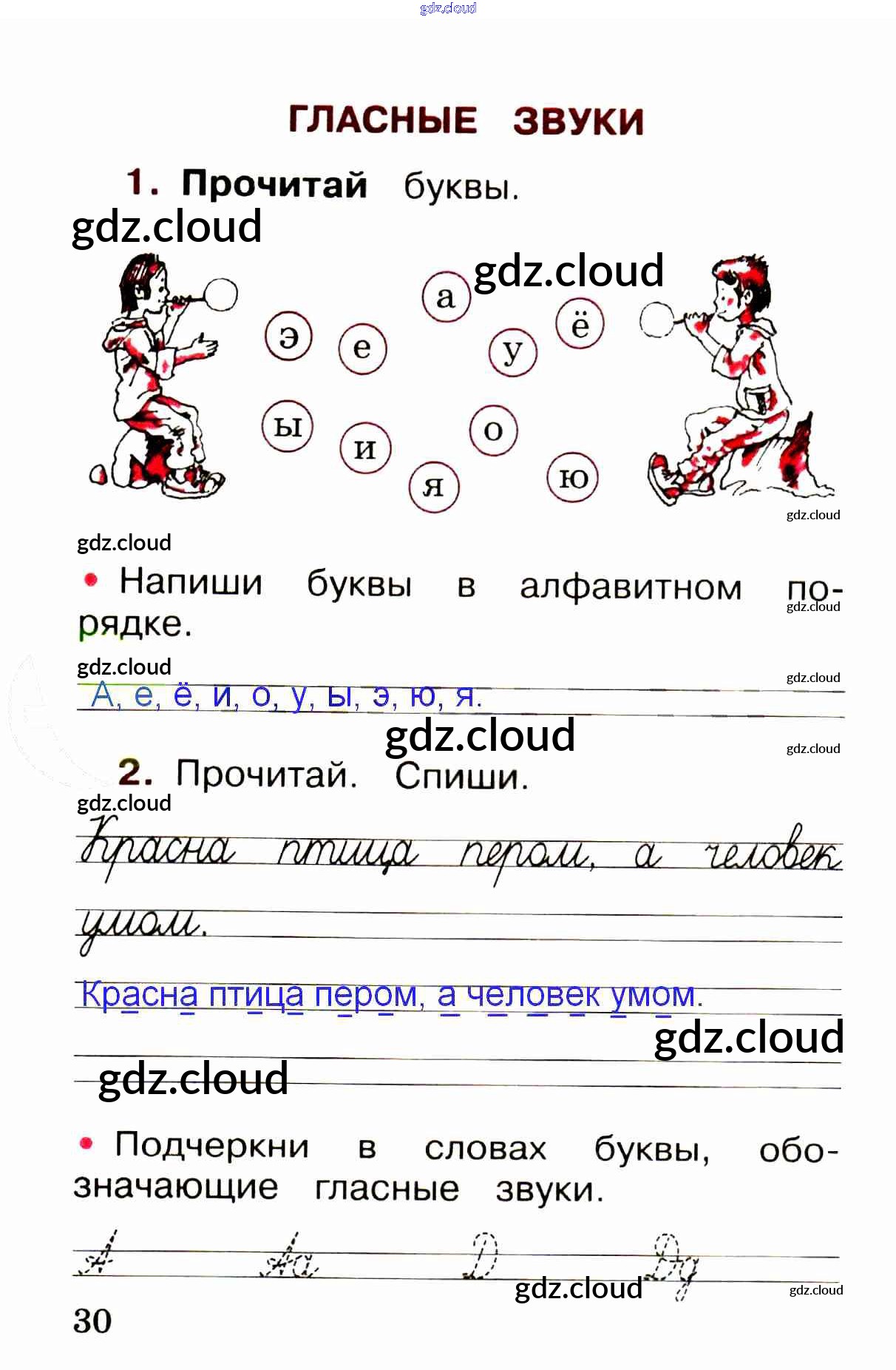 Ответ на задание стр. 30 Рабочая тетрадь Русский язык за 1 (первый) класс Канакина, Горецкий Школа России 2013