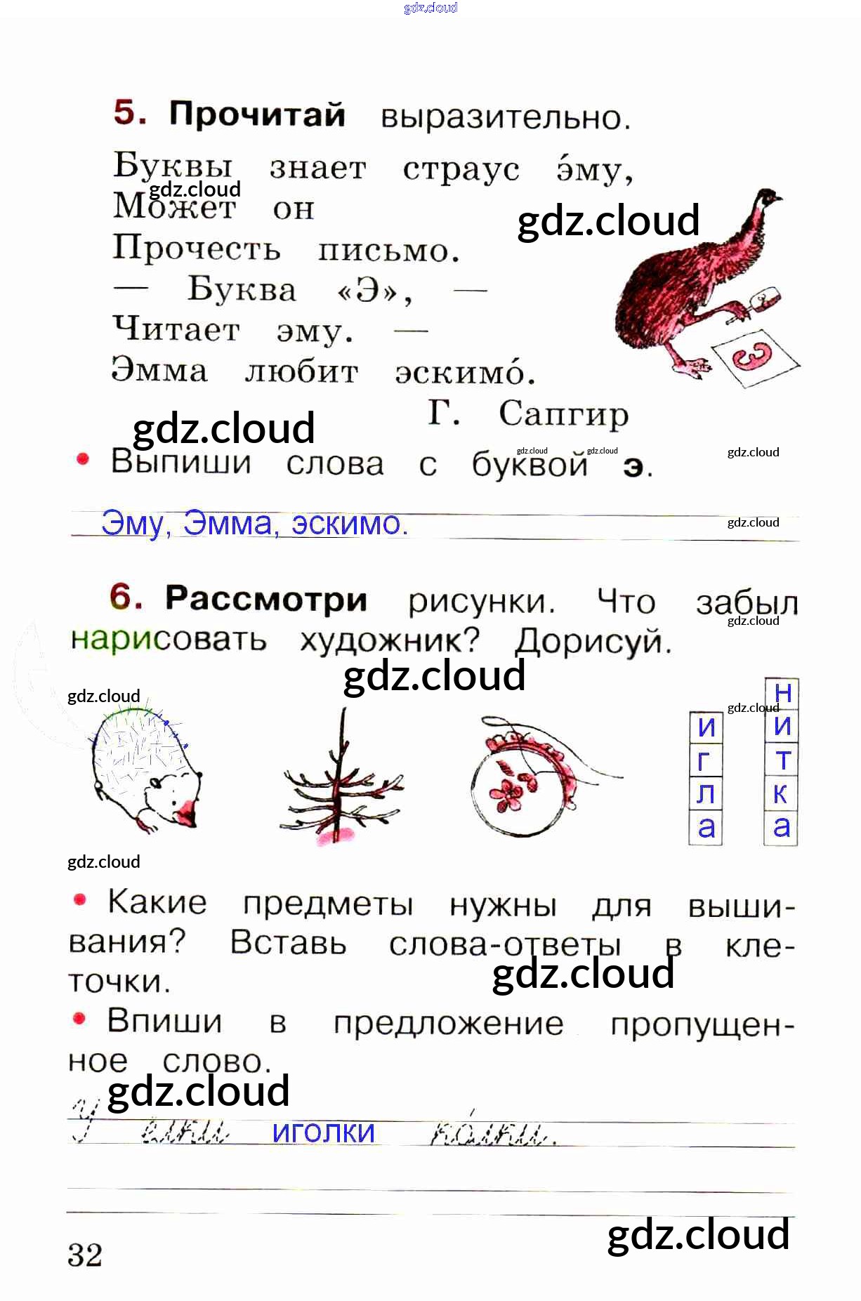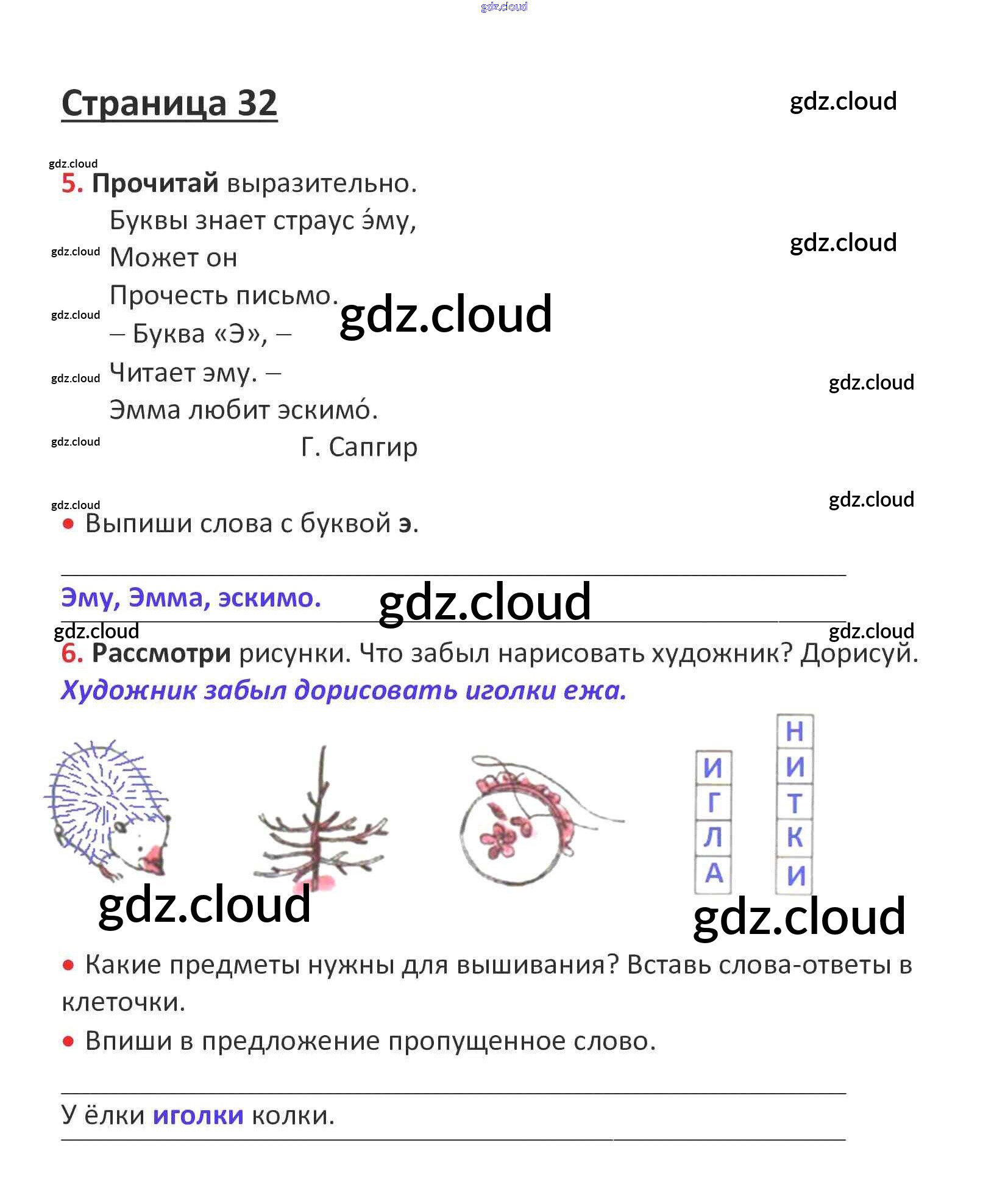 Ответ на задание стр. 32 Рабочая тетрадь Русский язык за 1 (первый) класс Канакина, Горецкий Школа России 2013