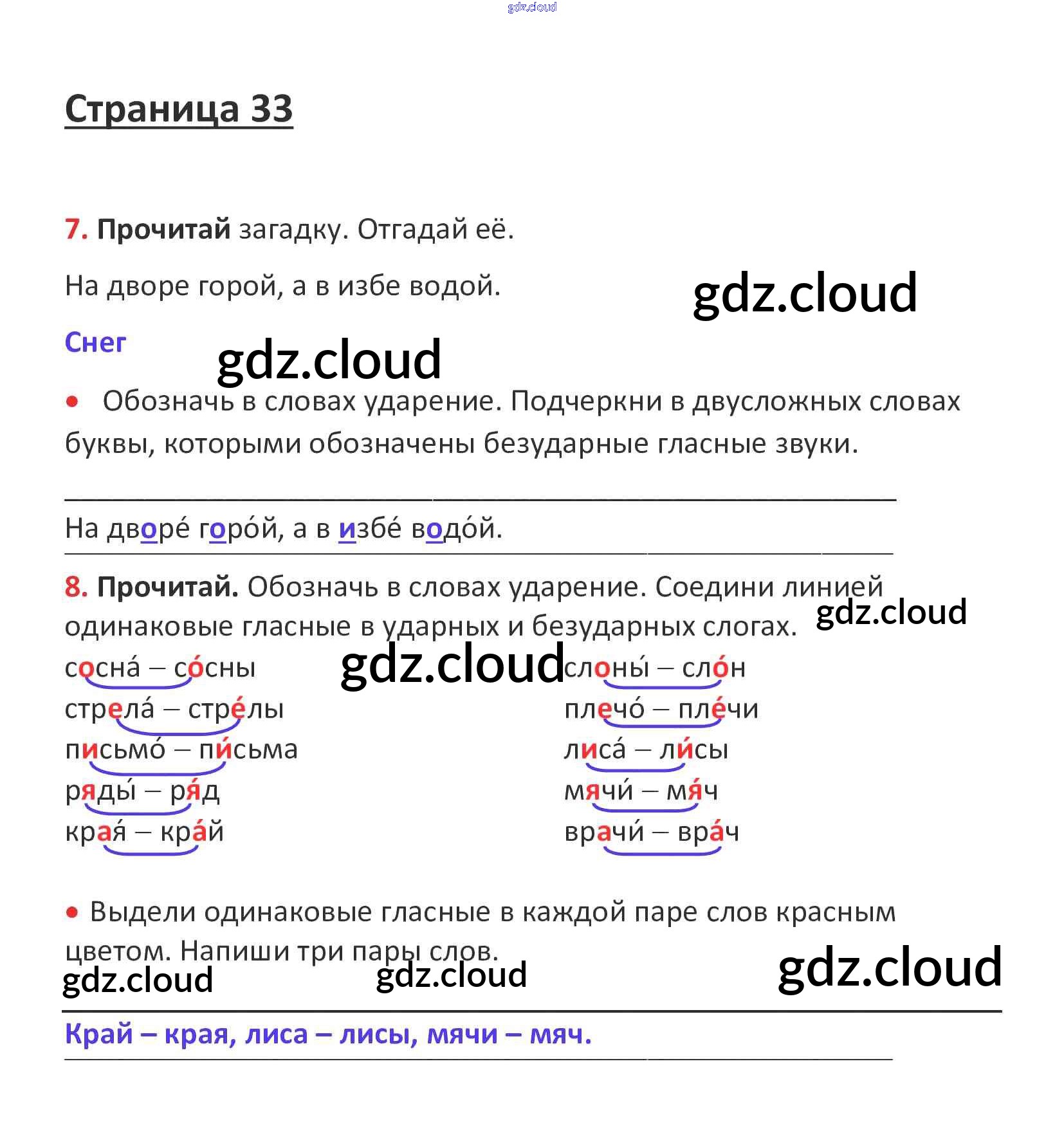 Ответ на задание стр. 33 Рабочая тетрадь Русский язык за 1 (первый) класс Канакина, Горецкий Школа России 2013