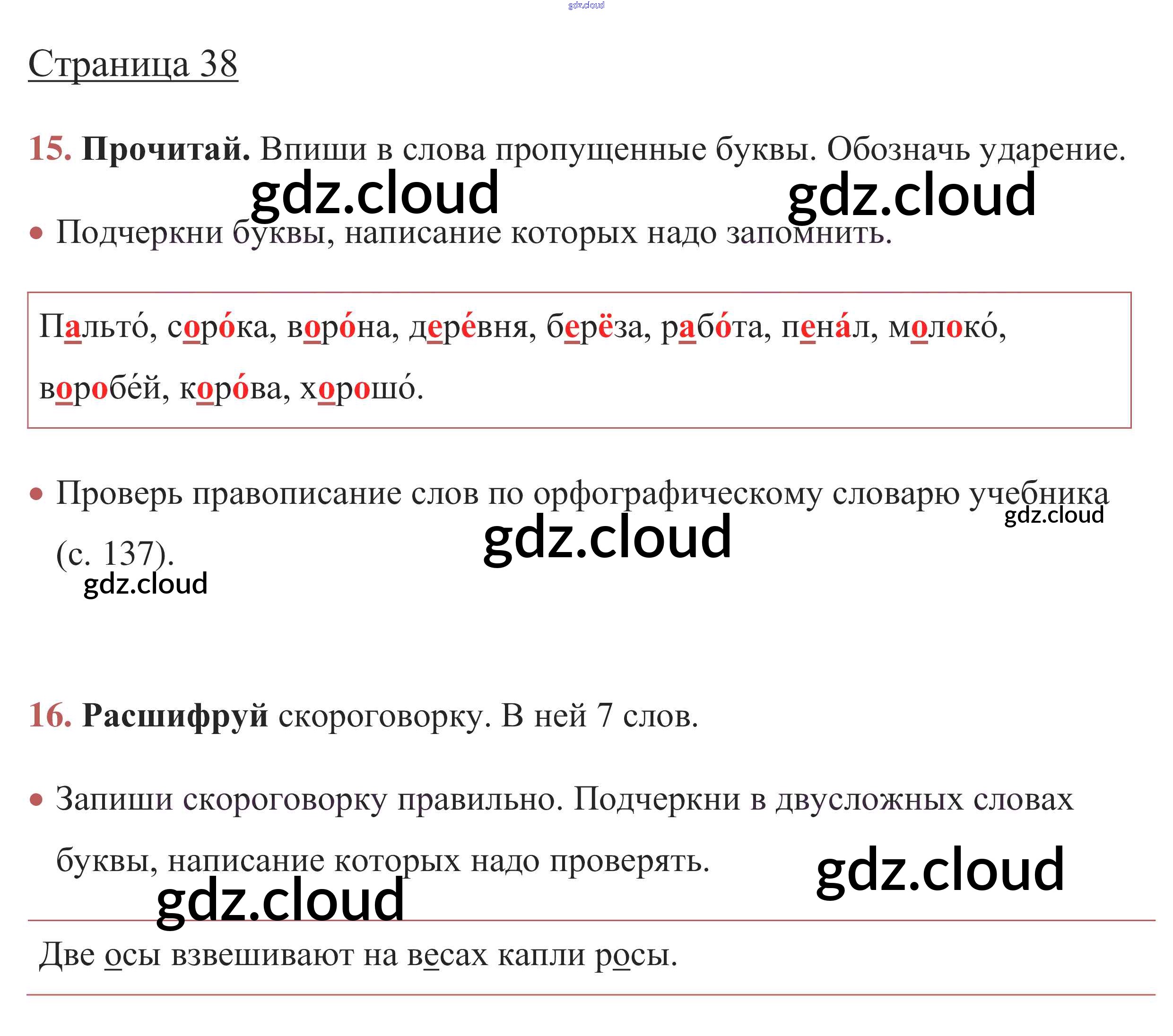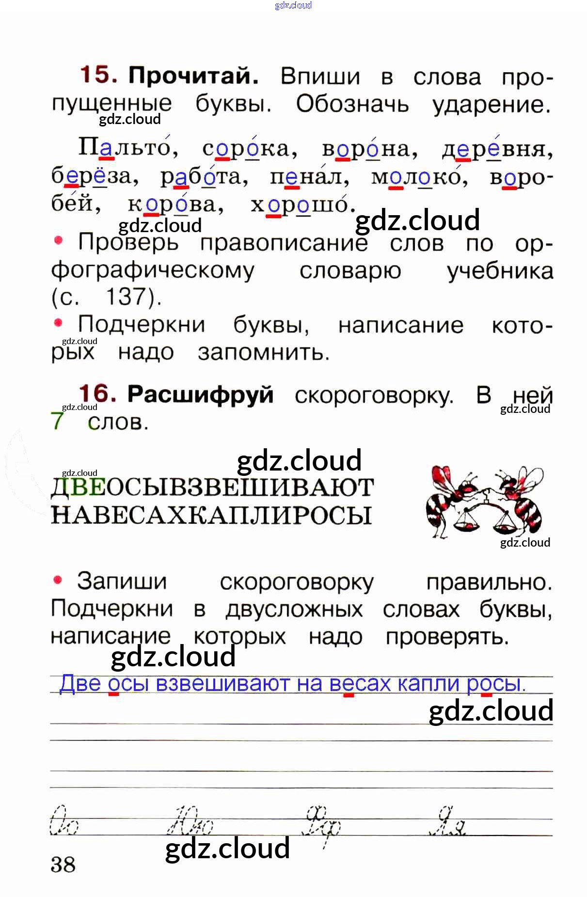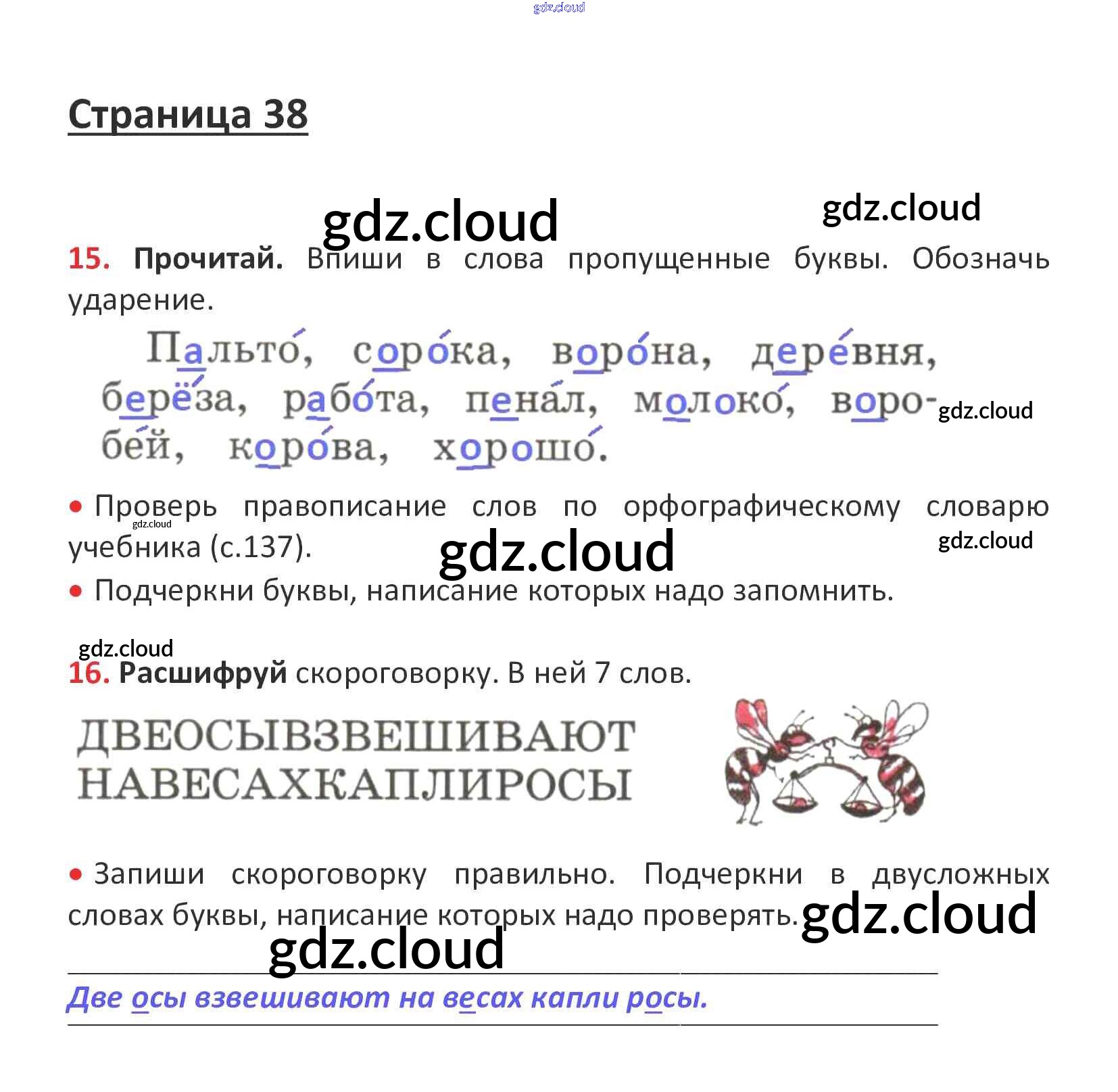 Ответ на задание стр. 38 Рабочая тетрадь Русский язык за 1 (первый) класс Канакина, Горецкий Школа России 2013
