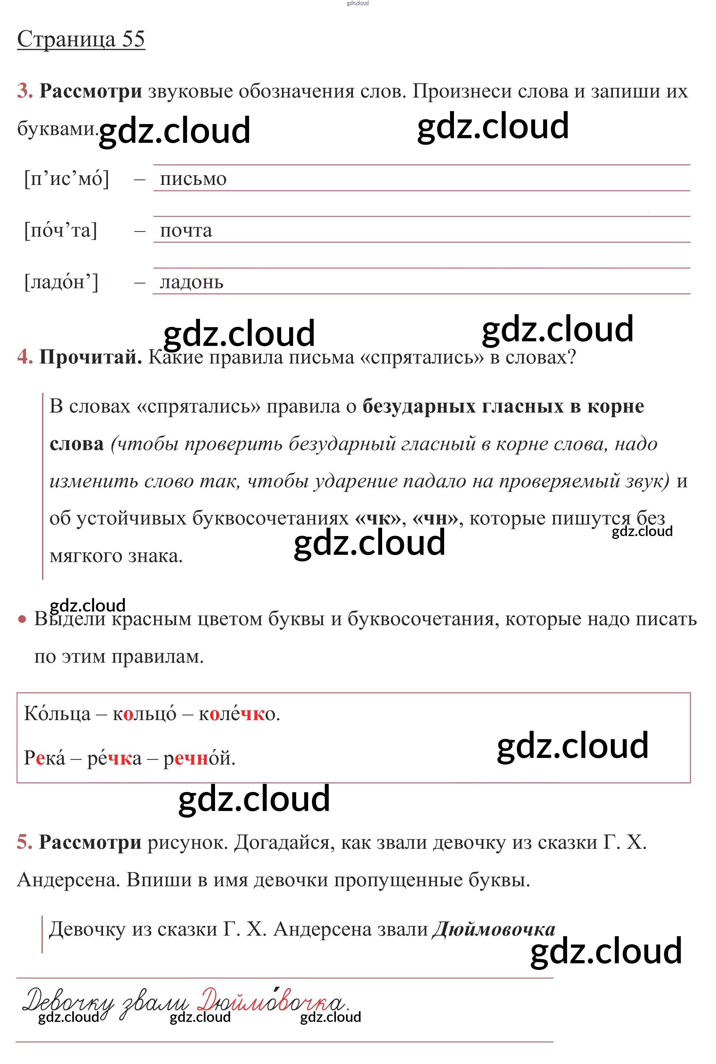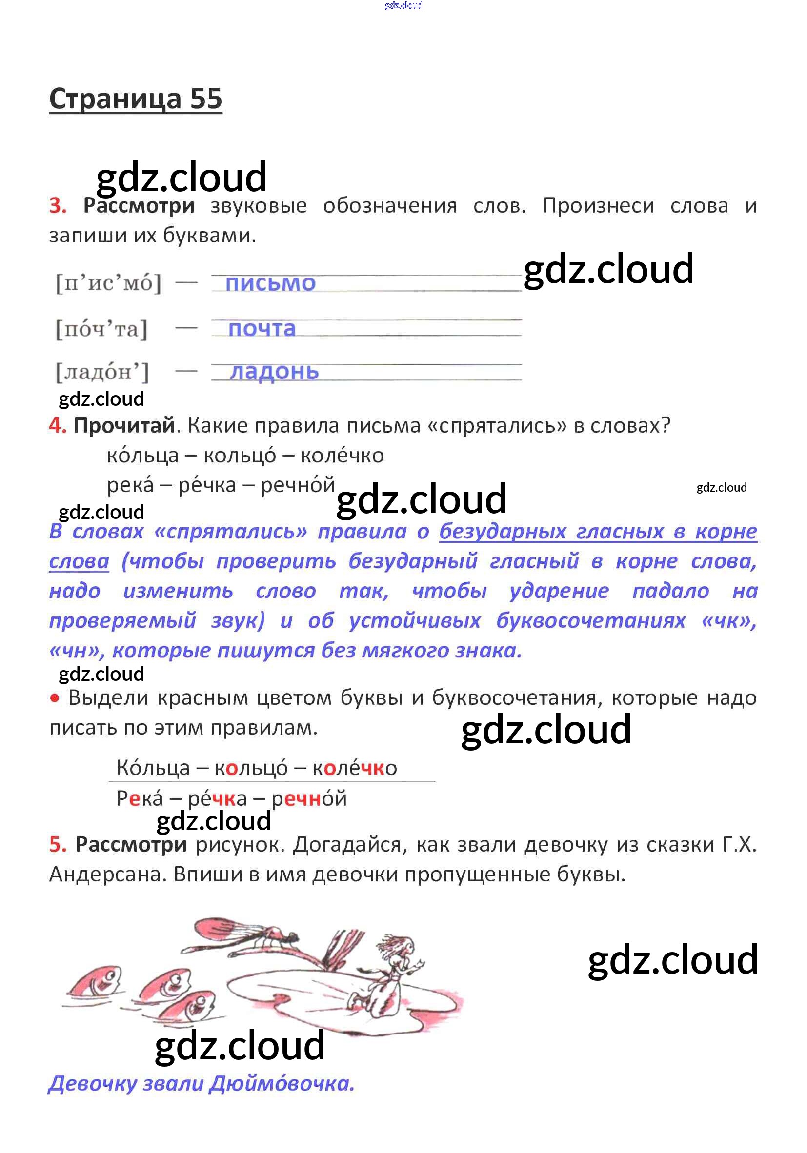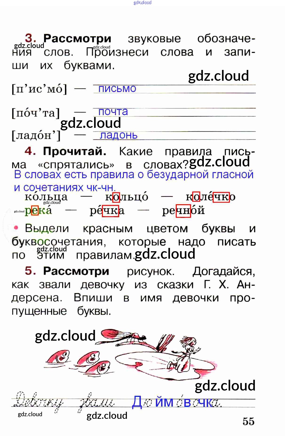 Ответ на задание стр. 55 Рабочая тетрадь Русский язык за 1 (первый) класс Канакина, Горецкий Школа России 2013