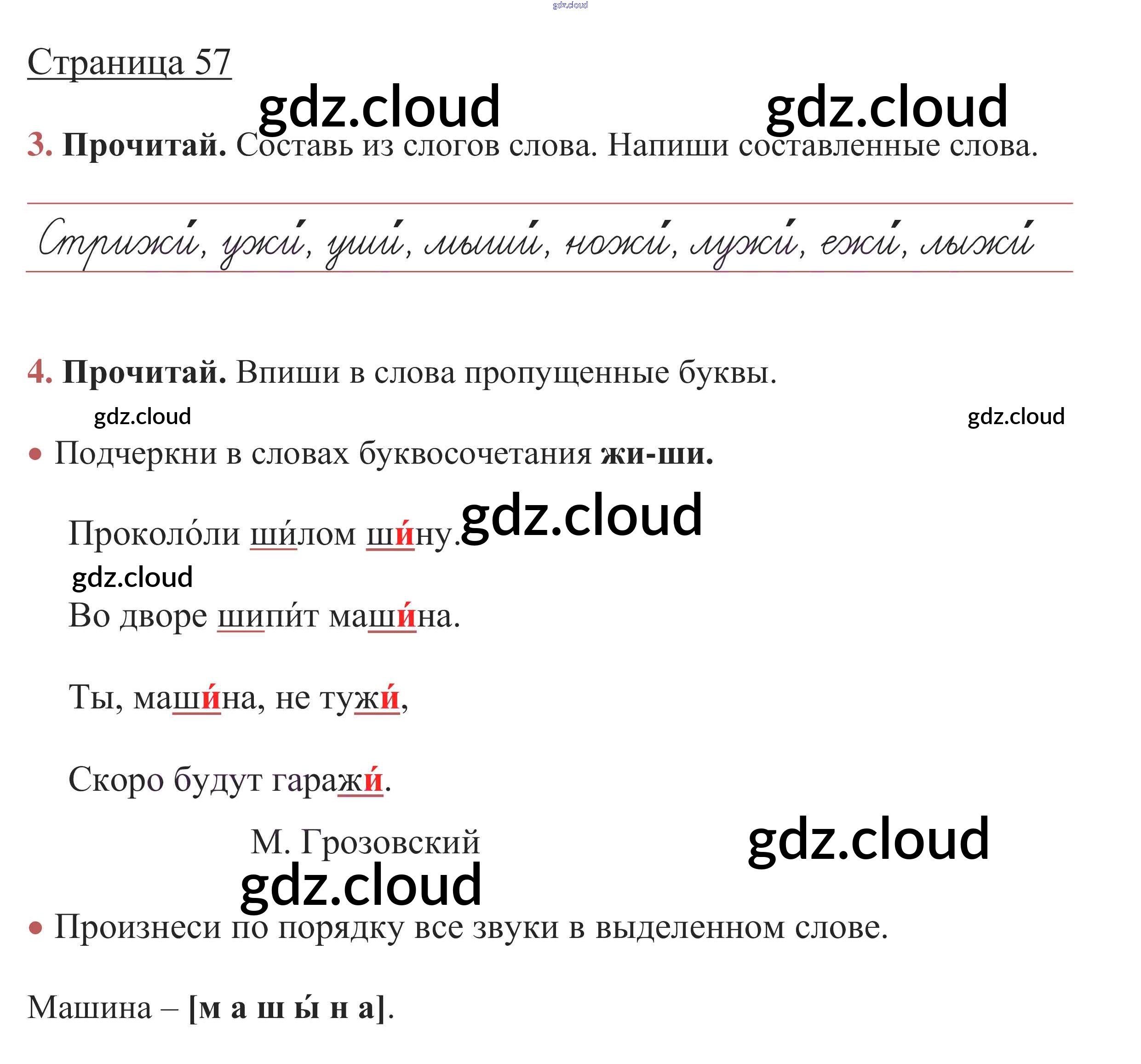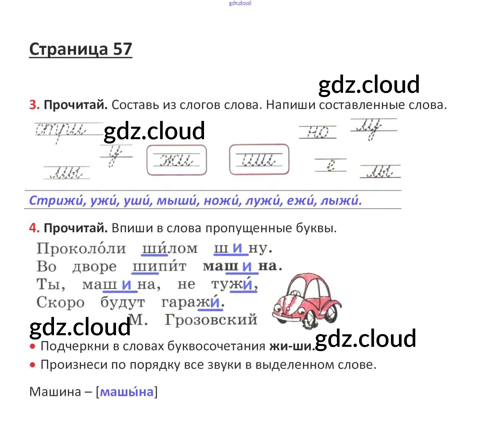 Ответ на задание стр. 57 Рабочая тетрадь Русский язык за 1 (первый) класс Канакина, Горецкий Школа России 2013