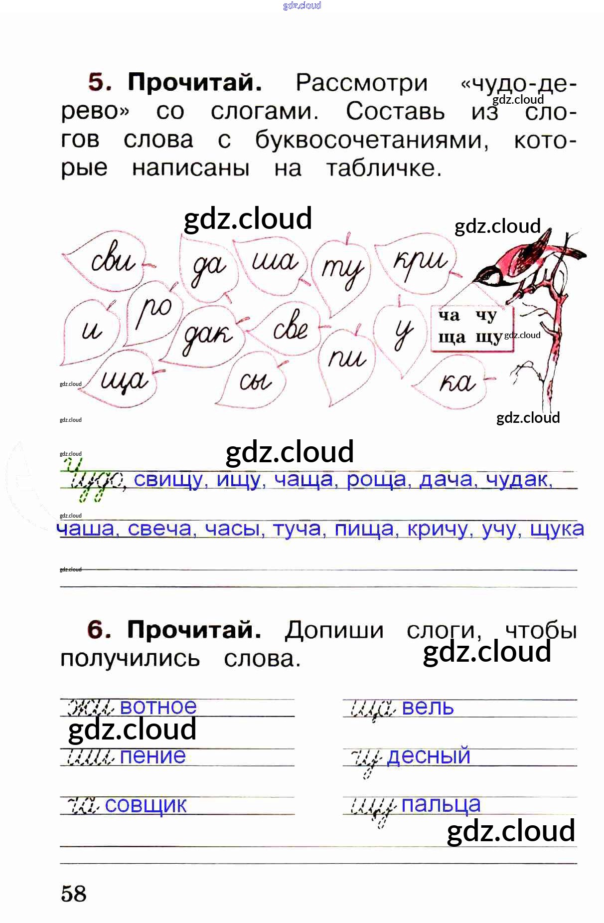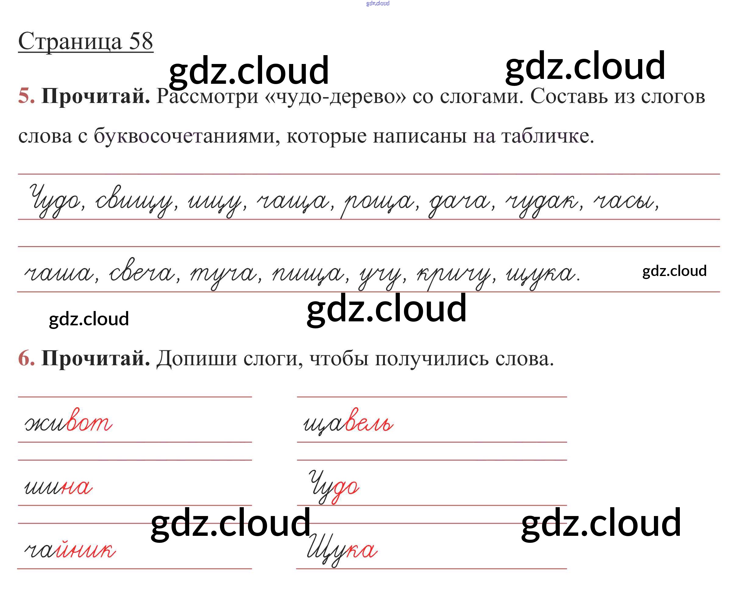 Ответ на задание стр. 58 Рабочая тетрадь Русский язык за 1 (первый) класс Канакина, Горецкий Школа России 2013