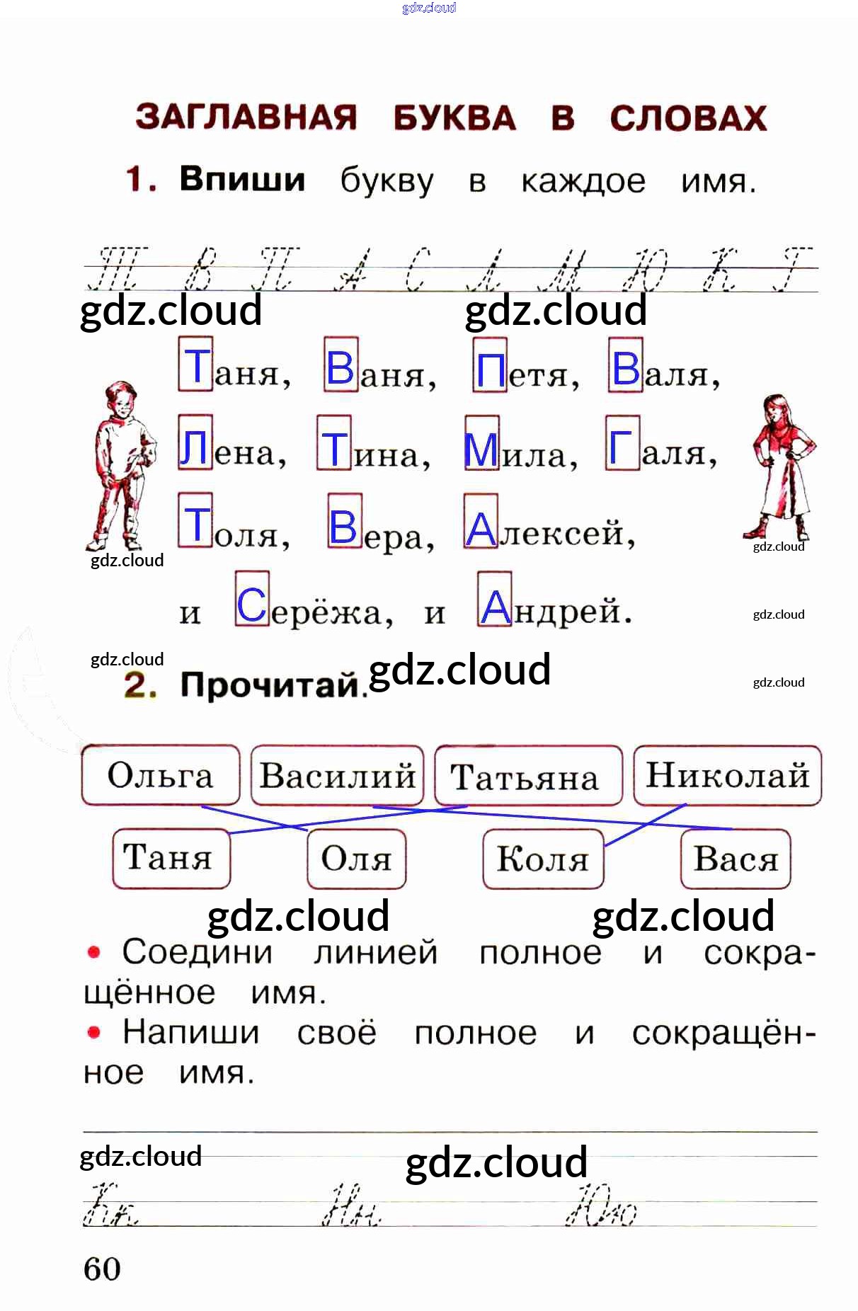 Ответ на задание стр. 60 Рабочая тетрадь Русский язык за 1 (первый) класс Канакина, Горецкий Школа России 2013