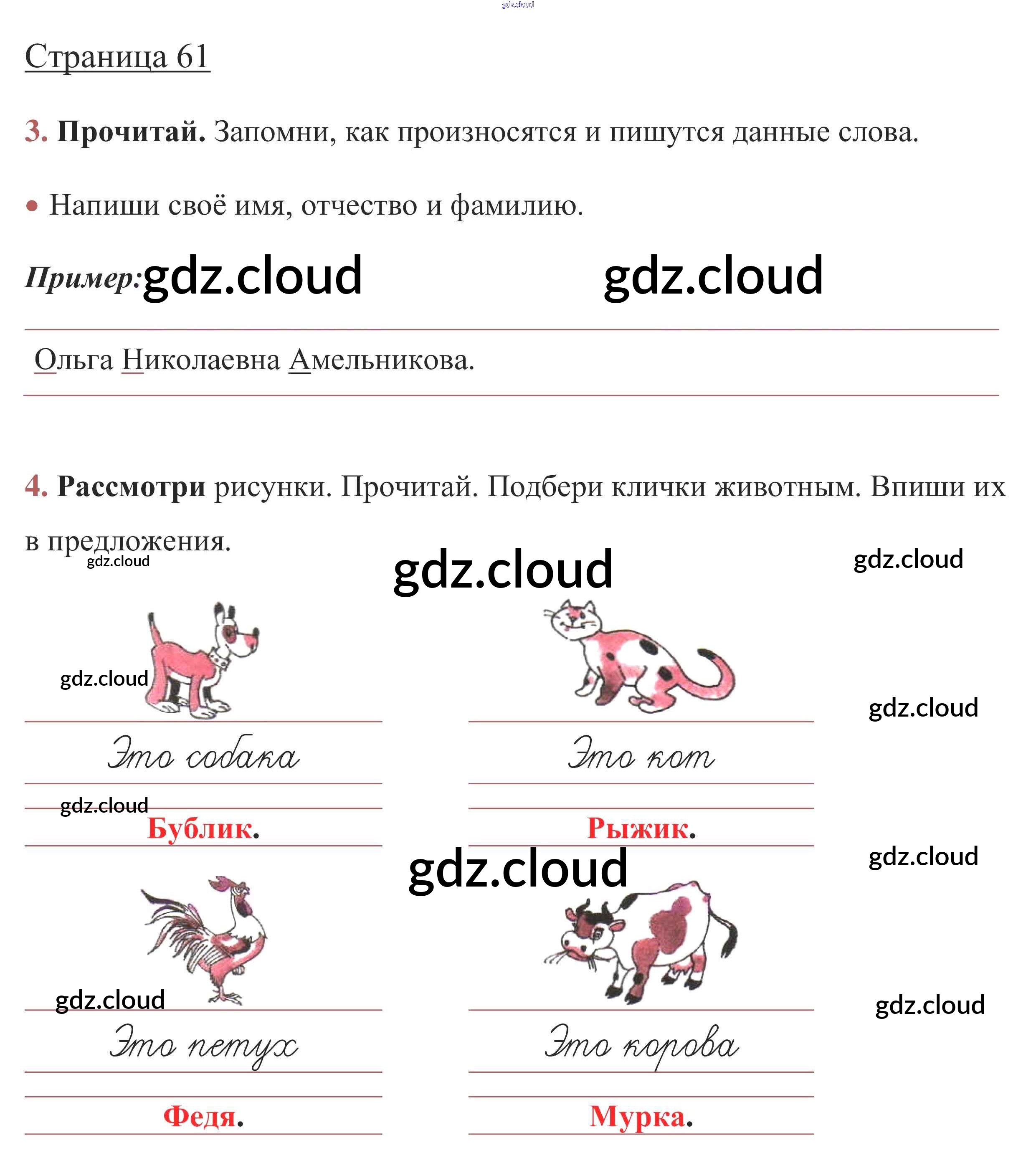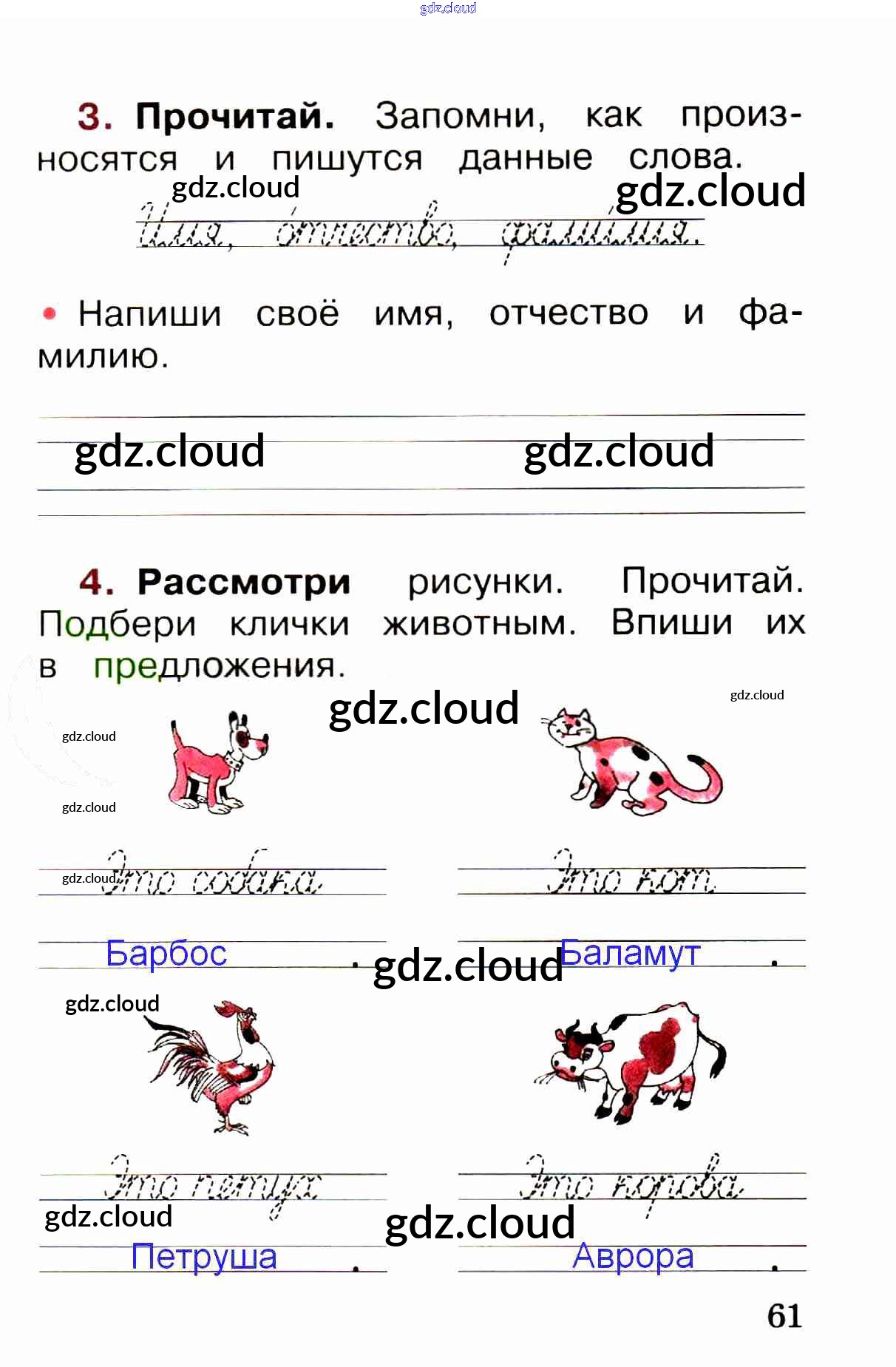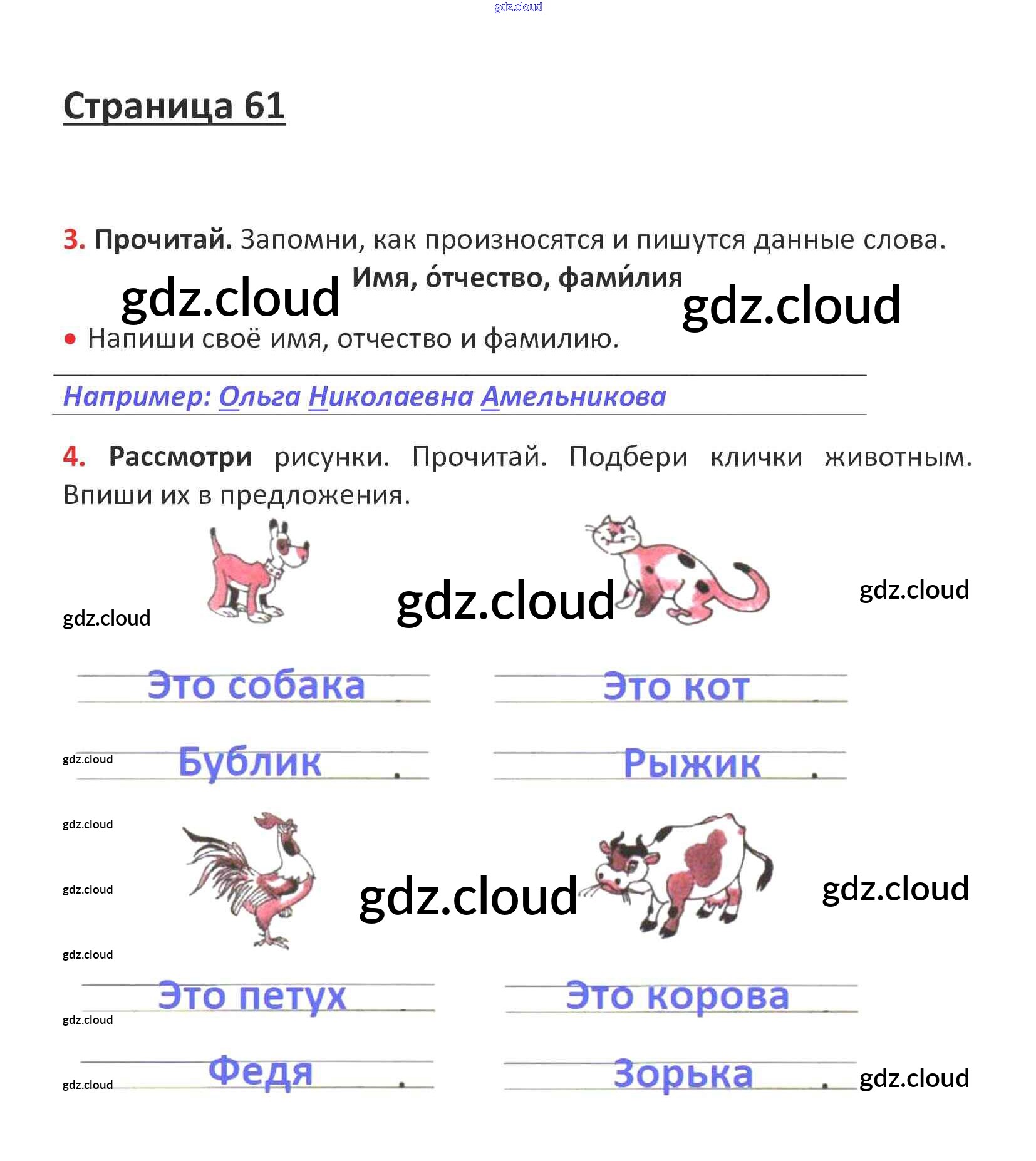 Ответ на задание стр. 61 Рабочая тетрадь Русский язык за 1 (первый) класс Канакина, Горецкий Школа России 2013