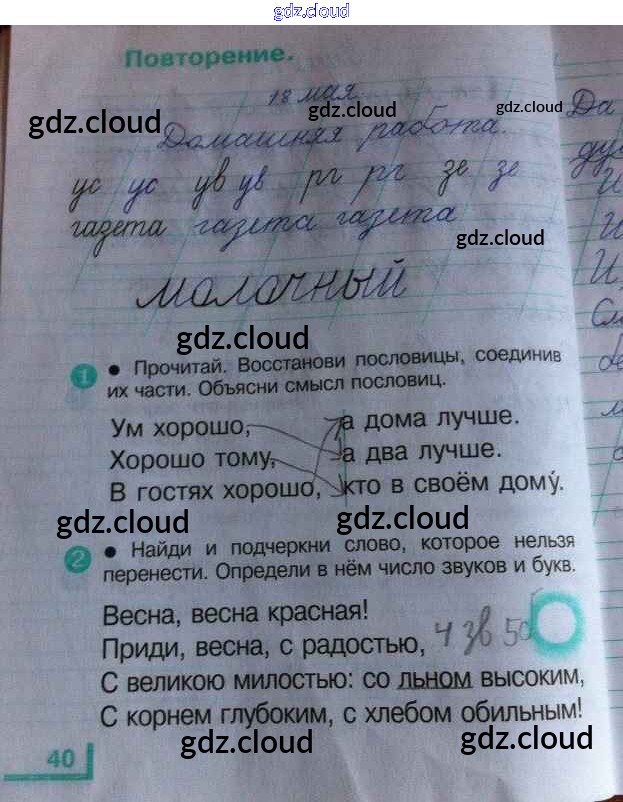 Ответ на задание стр.40 Рабочая тетрадь Русский язык за 1 (первый) класс Андрианова Планета знаний 2017