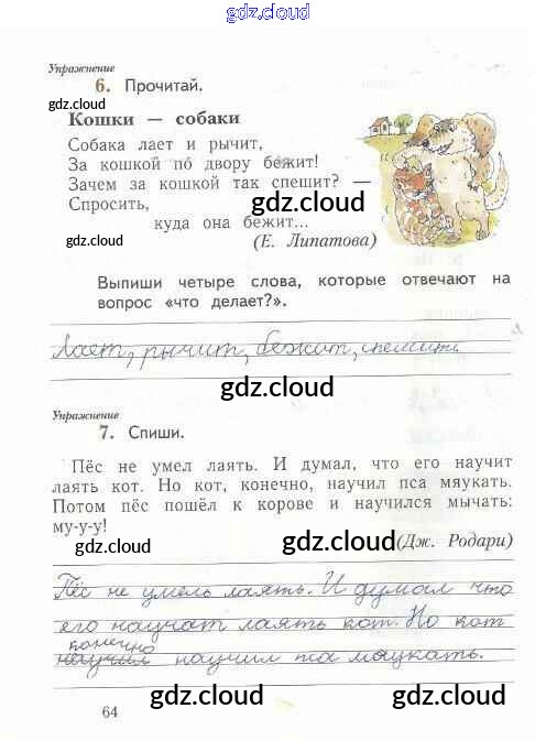 Ответ на задание стр.64 Рабочая тетрадь Русский язык за 1 (первый) класс Иванов, Евдокимова, Кузнецова Начальная школа XXI века 2016 Часть 1, 2