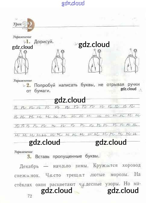 Ответ на задание стр.72 Рабочая тетрадь Русский язык за 1 (первый) класс Иванов, Евдокимова, Кузнецова Начальная школа XXI века 2016 Часть 1, 2