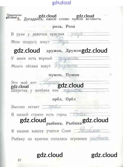Ответ на задание стр.87 Рабочая тетрадь Русский язык за 1 (первый) класс Иванов, Евдокимова, Кузнецова Начальная школа XXI века 2016 Часть 1, 2