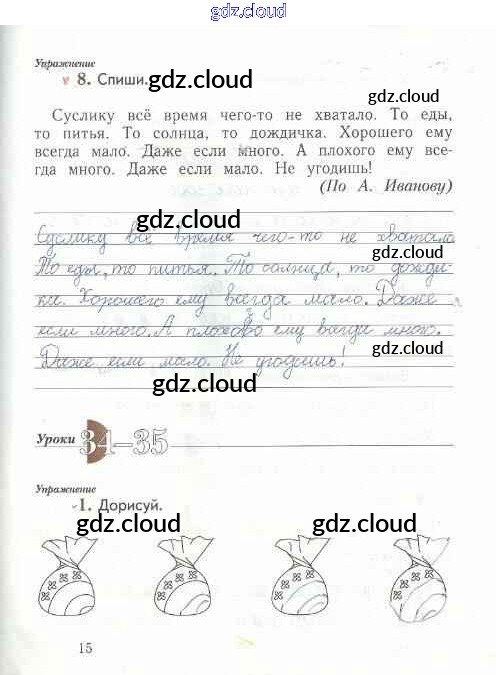 Ответ на задание стр.15 Рабочая тетрадь Русский язык за 1 (первый) класс Иванов, Евдокимова, Кузнецова Начальная школа XXI века 2016 Часть 1, 2