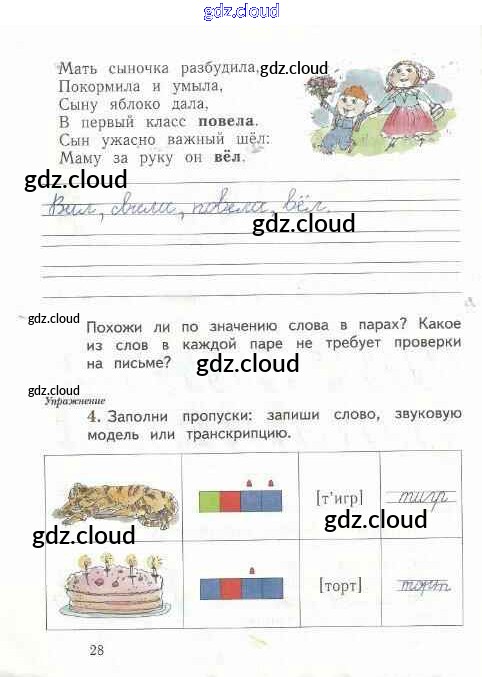 Ответ на задание стр.28 Рабочая тетрадь Русский язык за 1 (первый) класс Иванов, Евдокимова, Кузнецова Начальная школа XXI века 2016 Часть 1, 2