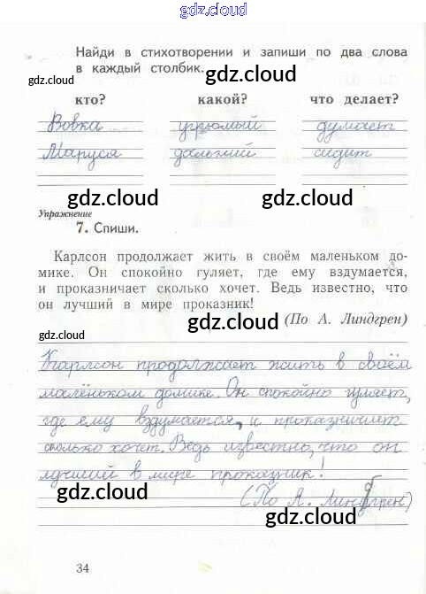 Ответ на задание стр.34 Рабочая тетрадь Русский язык за 1 (первый) класс Иванов, Евдокимова, Кузнецова Начальная школа XXI века 2016 Часть 1, 2