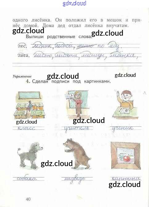 Ответ на задание стр.40 Рабочая тетрадь Русский язык за 1 (первый) класс Иванов, Евдокимова, Кузнецова Начальная школа XXI века 2016 Часть 1, 2