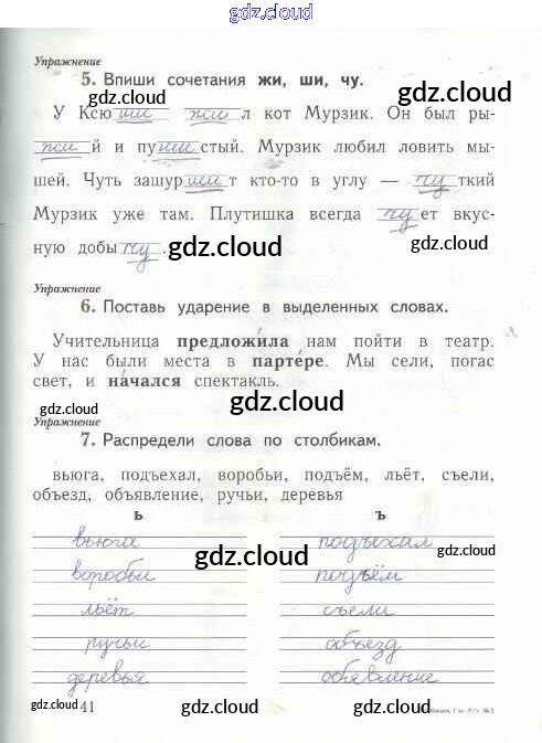 Ответ на задание стр.41 Рабочая тетрадь Русский язык за 1 (первый) класс Иванов, Евдокимова, Кузнецова Начальная школа XXI века 2016 Часть 1, 2