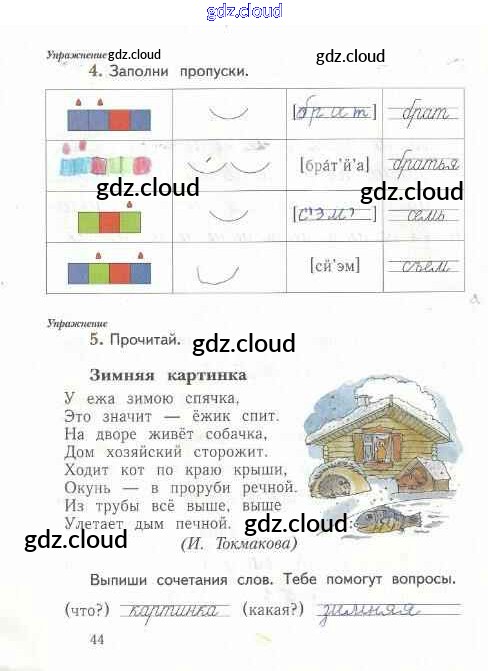 Ответ на задание стр.44 Рабочая тетрадь Русский язык за 1 (первый) класс Иванов, Евдокимова, Кузнецова Начальная школа XXI века 2016 Часть 1, 2