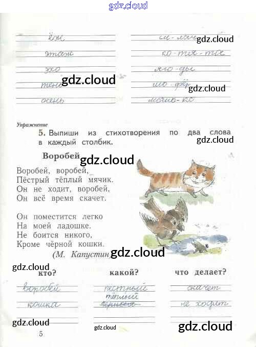 Ответ на задание стр.5 Рабочая тетрадь Русский язык за 1 (первый) класс Иванов, Евдокимова, Кузнецова Начальная школа XXI века 2016 Часть 1, 2