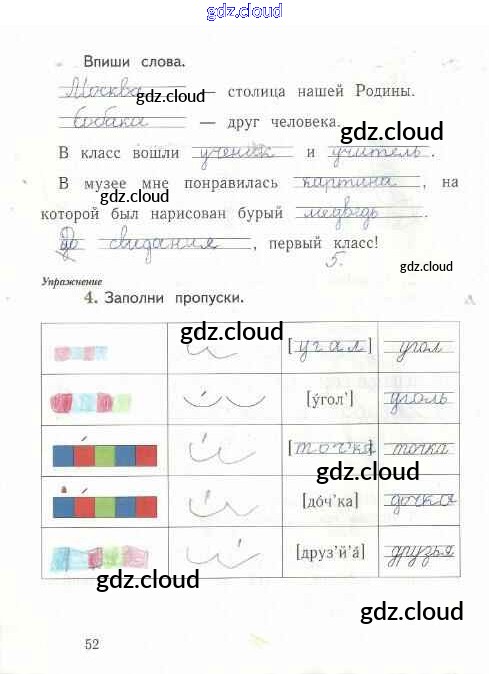 Ответ на задание стр.52 Рабочая тетрадь Русский язык за 1 (первый) класс Иванов, Евдокимова, Кузнецова Начальная школа XXI века 2016 Часть 1, 2