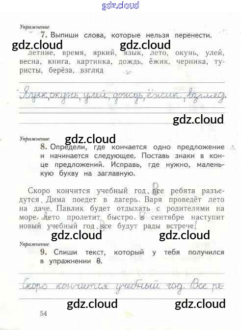 Ответ на задание стр.54 Рабочая тетрадь Русский язык за 1 (первый) класс Иванов, Евдокимова, Кузнецова Начальная школа XXI века 2016 Часть 1, 2