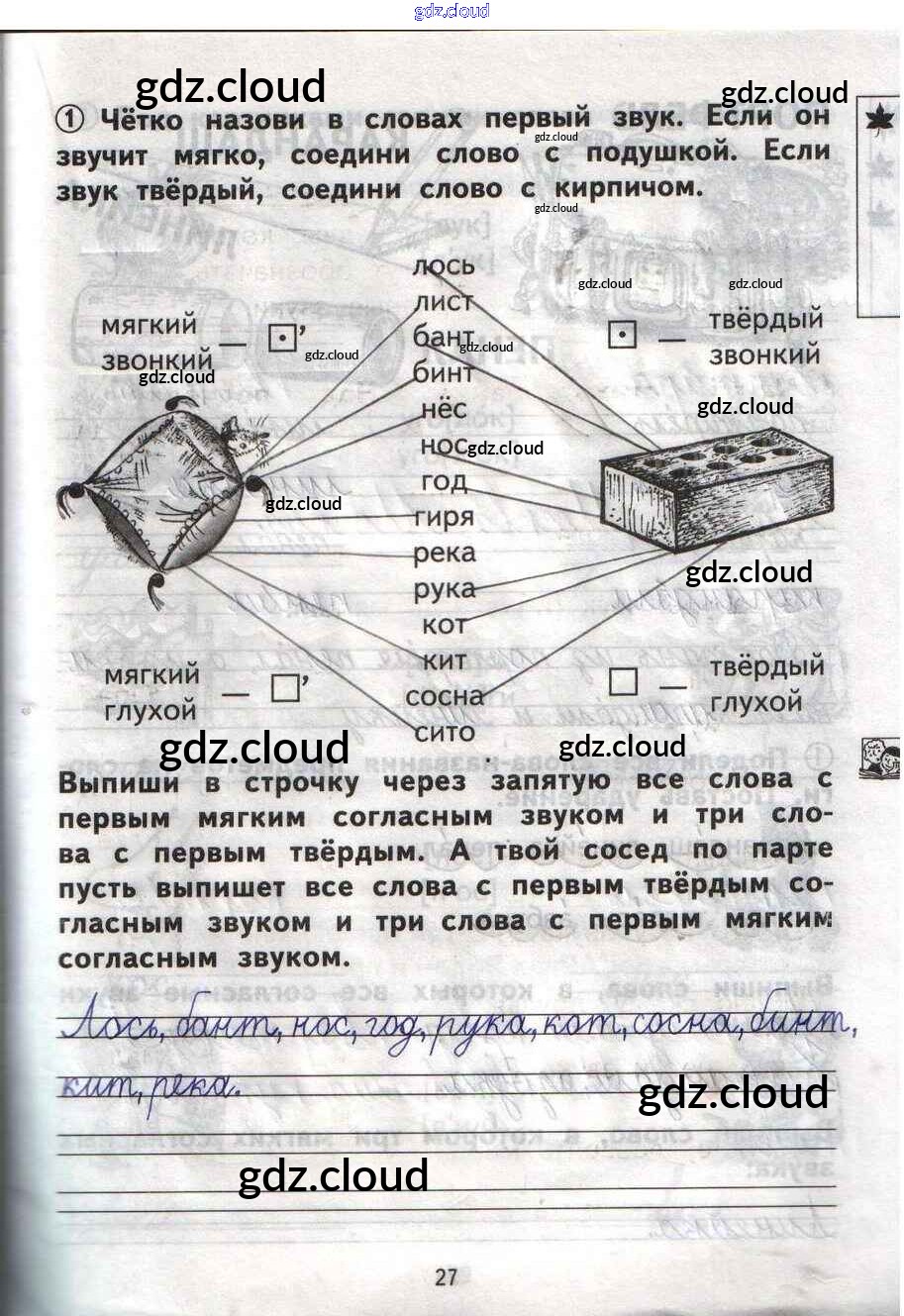Ответ на задание 27 Тетрадь для самостоятельной работы Русский язык за 1 (первый) класс Гольфман, Чуракова Перспективная начальная школа 2016