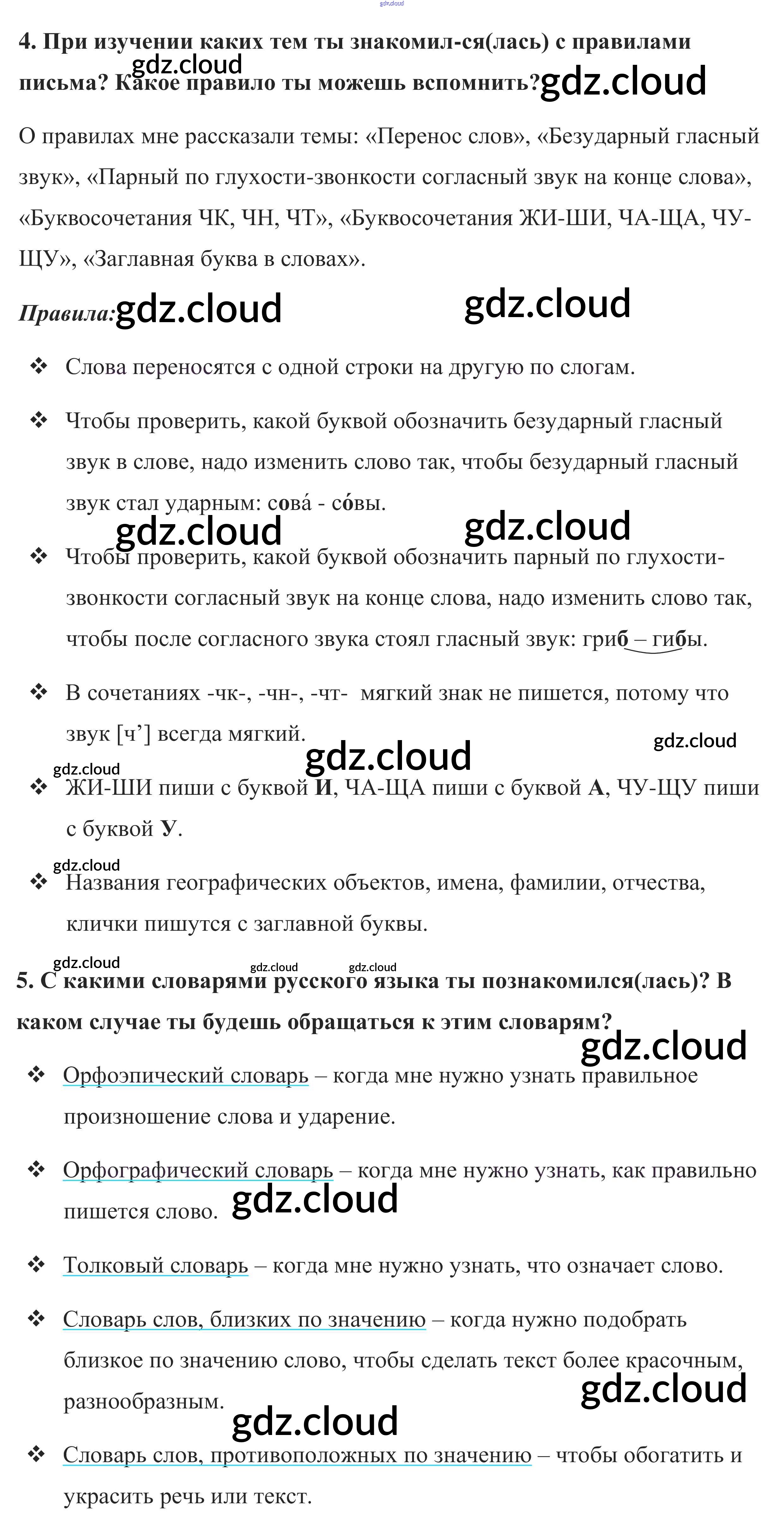 Ответы. Повторение по Русскому языку 1 класс Учебник Канакина Школа России Просвещение