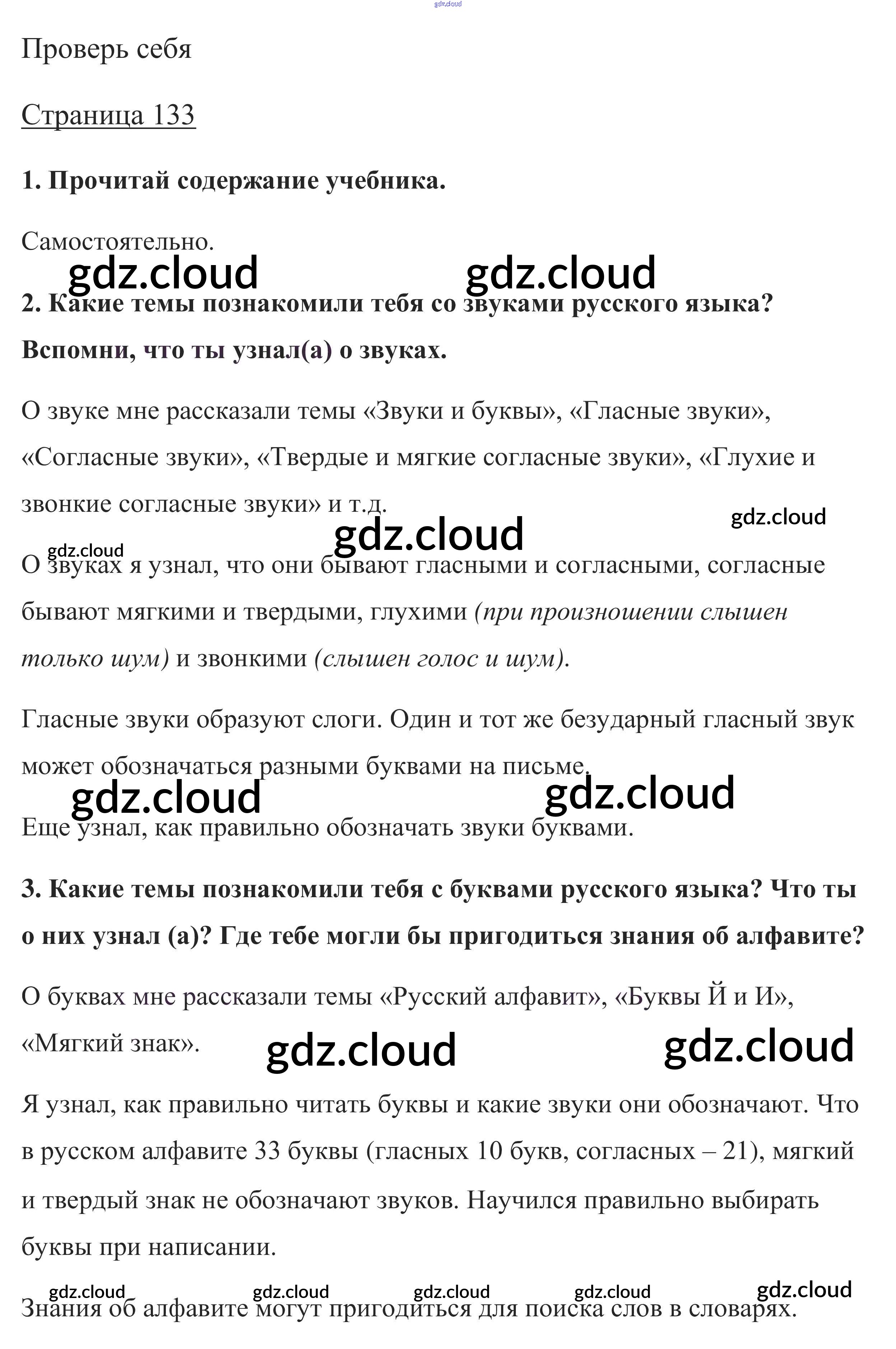 Ответ на задание стр. 133 Учебник Русский язык за 1 (первый) класс Канакина, Горецкий Школа России 2013