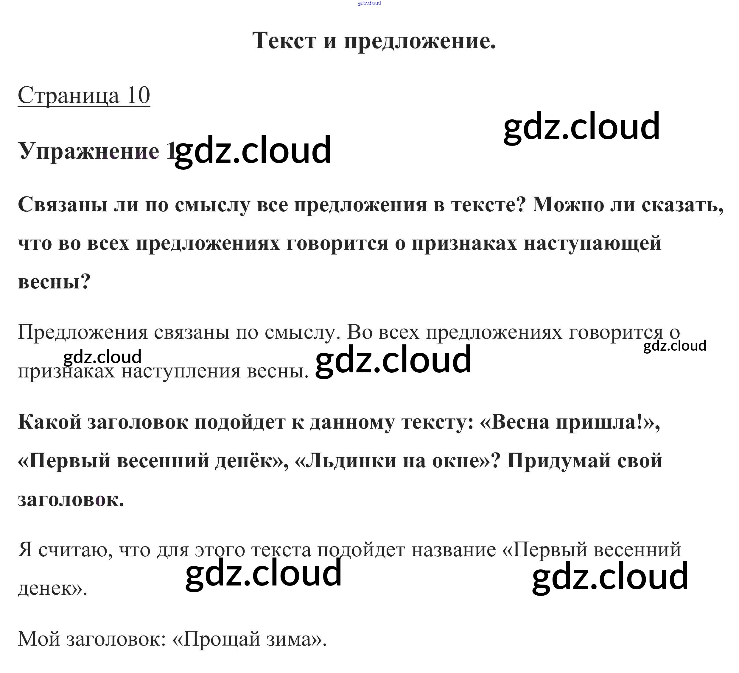 Ответ на задание стр. 10 Учебник Русский язык за 1 (первый) класс Канакина, Горецкий Школа России 2013