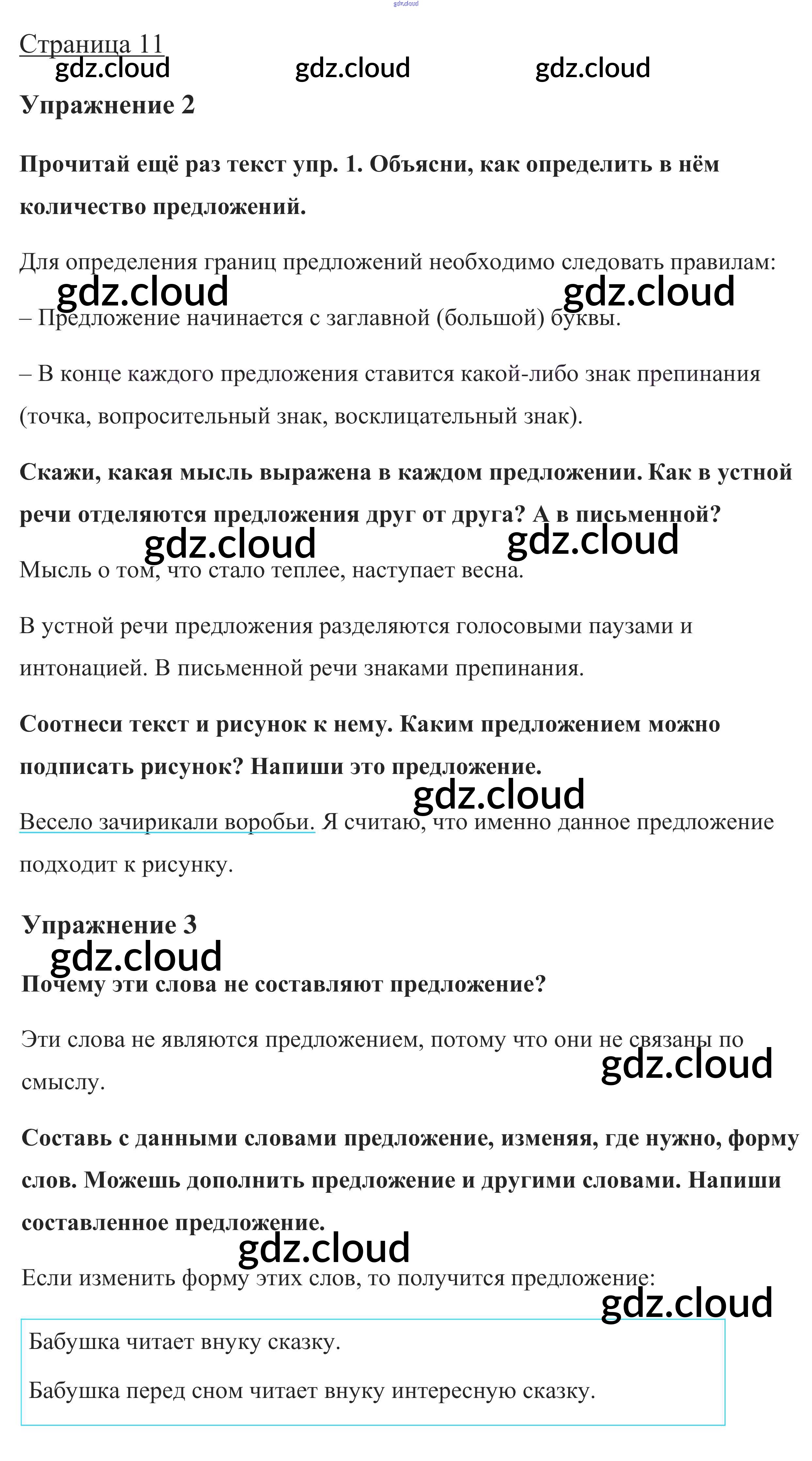 Ответ на задание стр. 11 Учебник Русский язык за 1 (первый) класс Канакина, Горецкий Школа России 2013