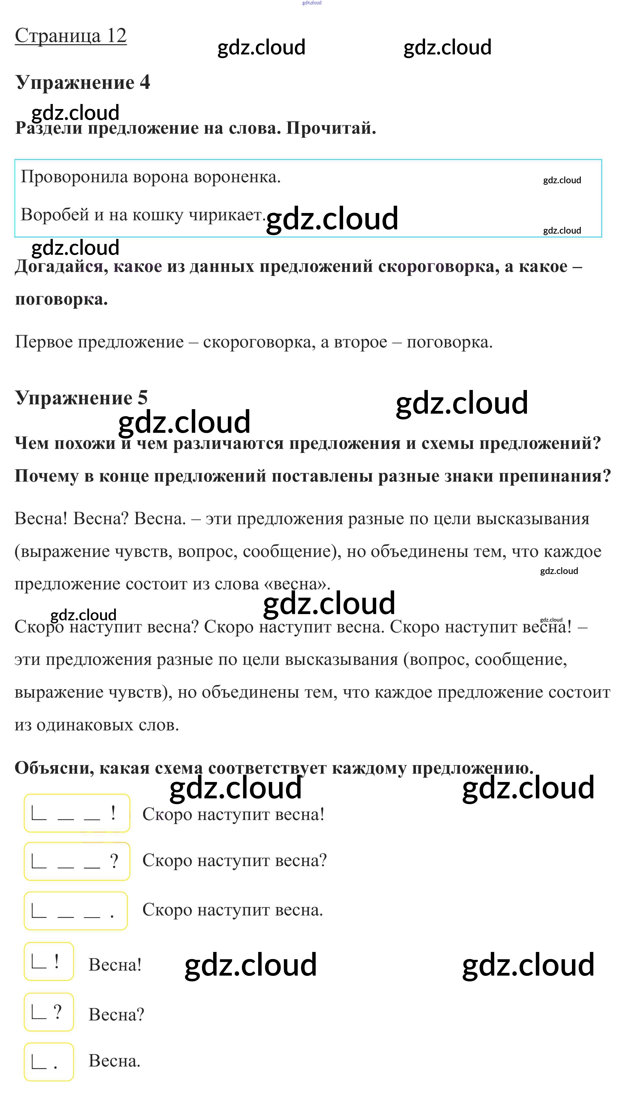 Ответ на задание стр. 12 Учебник Русский язык за 1 (первый) класс Канакина, Горецкий Школа России 2013