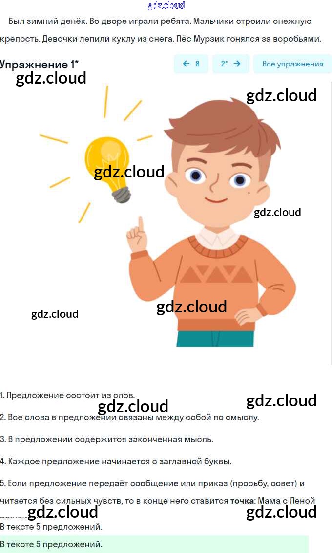 Ответы. Глава 2. Текст, предложение, диалог по Русскому языку 1 класс Учебник Канакина Школа России Просвещение