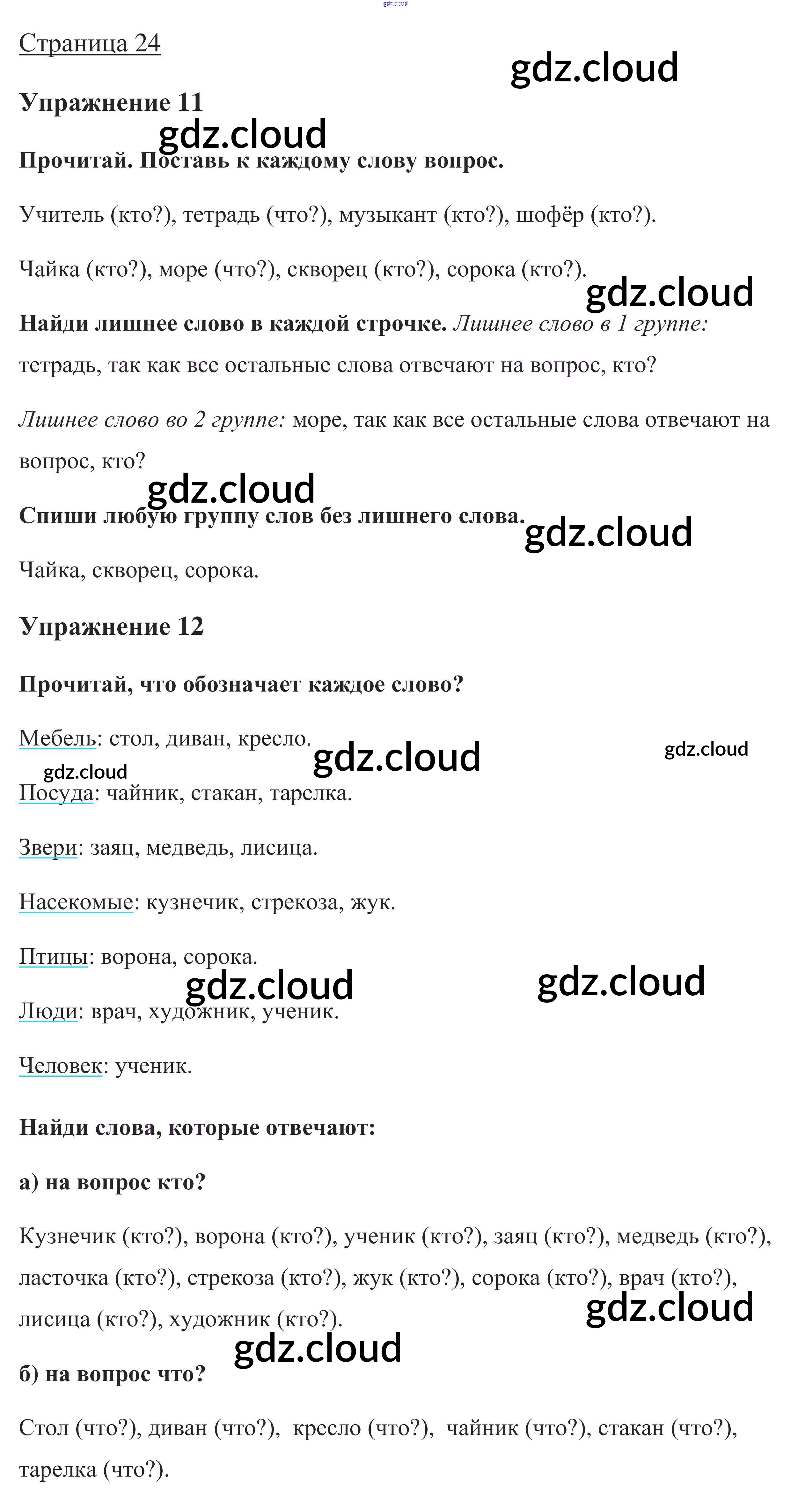 Ответ на задание стр. 24 Учебник Русский язык за 1 (первый) класс Канакина, Горецкий Школа России 2013