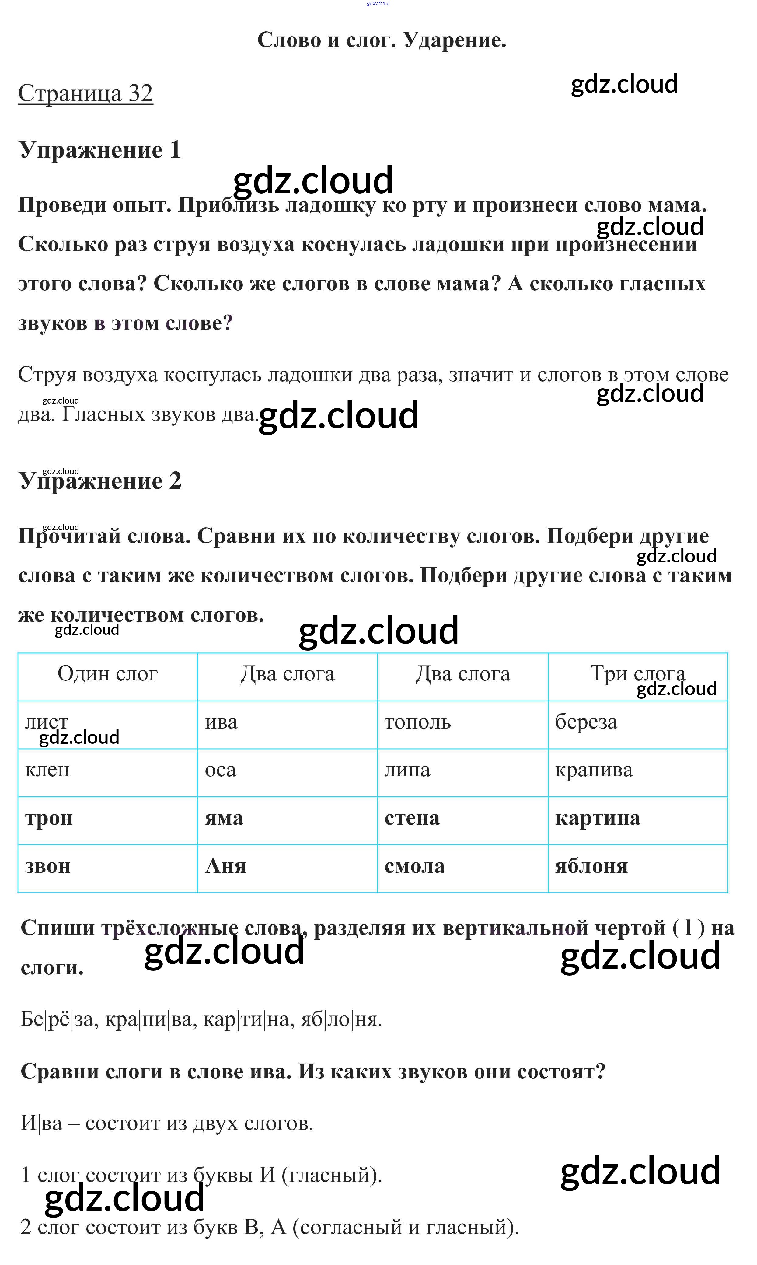 Ответ на задание стр. 32 Учебник Русский язык за 1 (первый) класс Канакина, Горецкий Школа России 2013