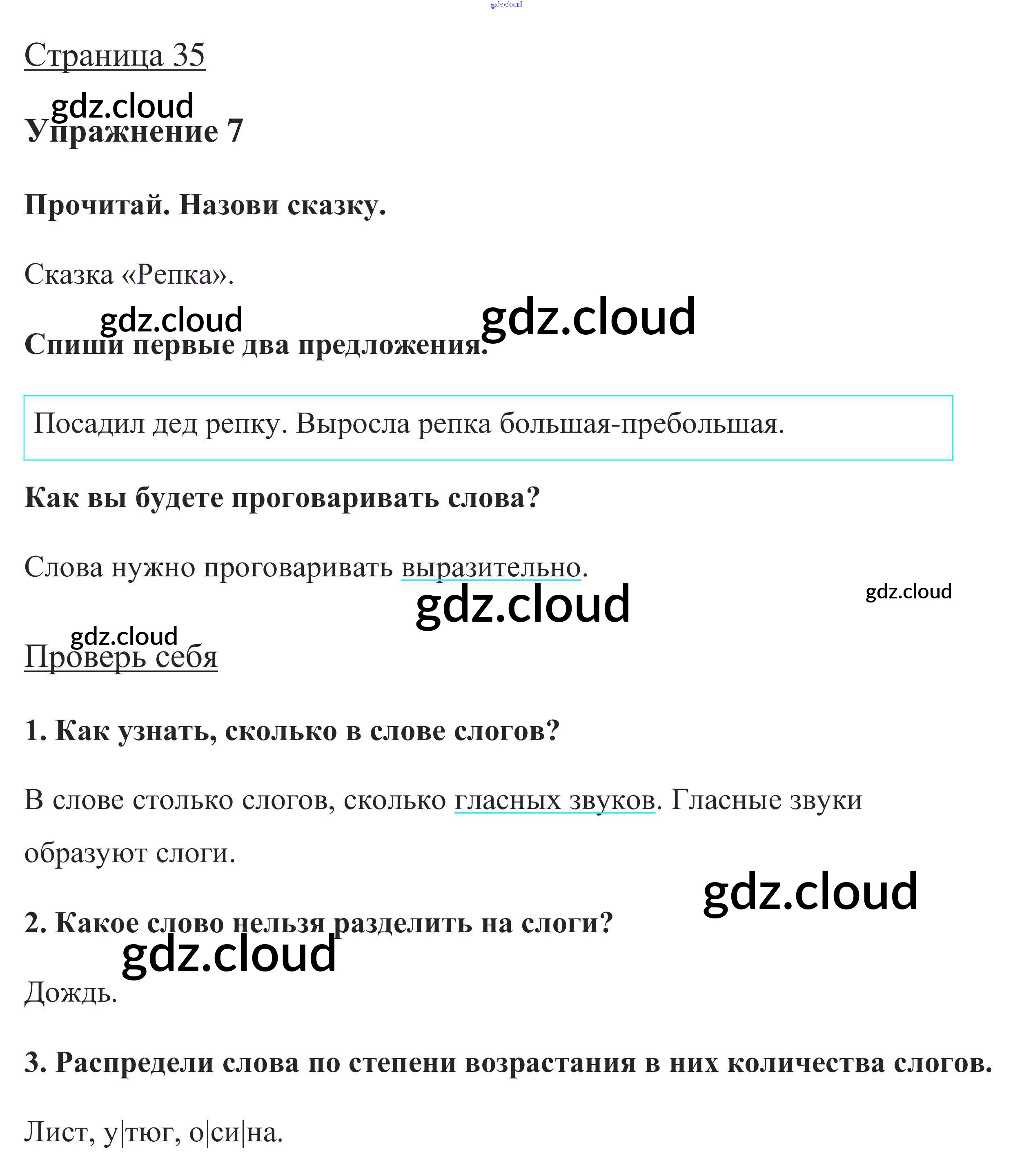 Ответ на задание стр. 35 Учебник Русский язык за 1 (первый) класс Канакина, Горецкий Школа России 2013