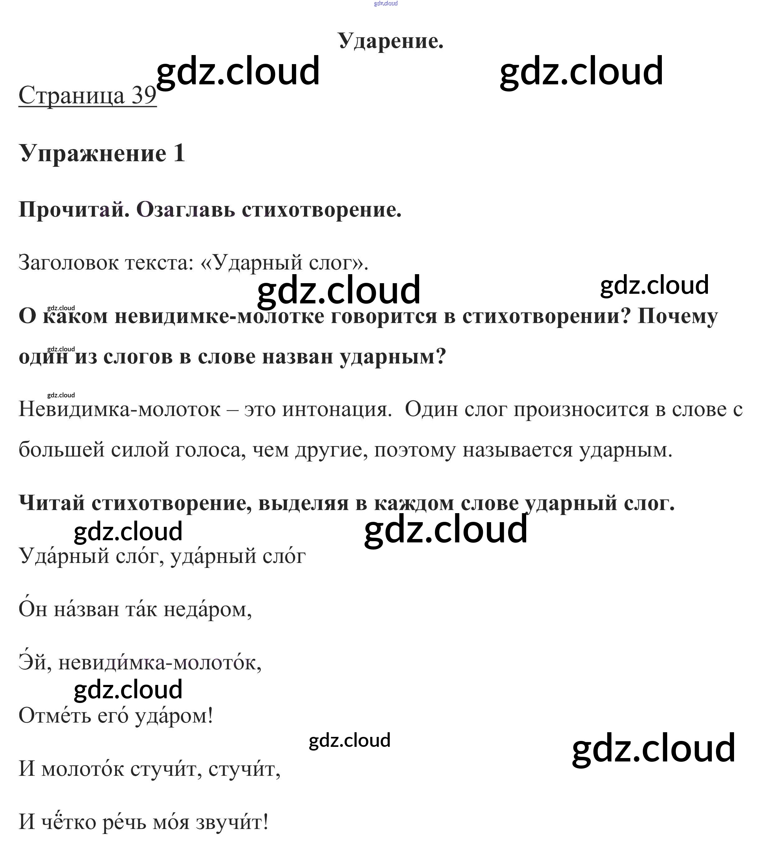Ответ на задание стр. 39 Учебник Русский язык за 1 (первый) класс Канакина, Горецкий Школа России 2013