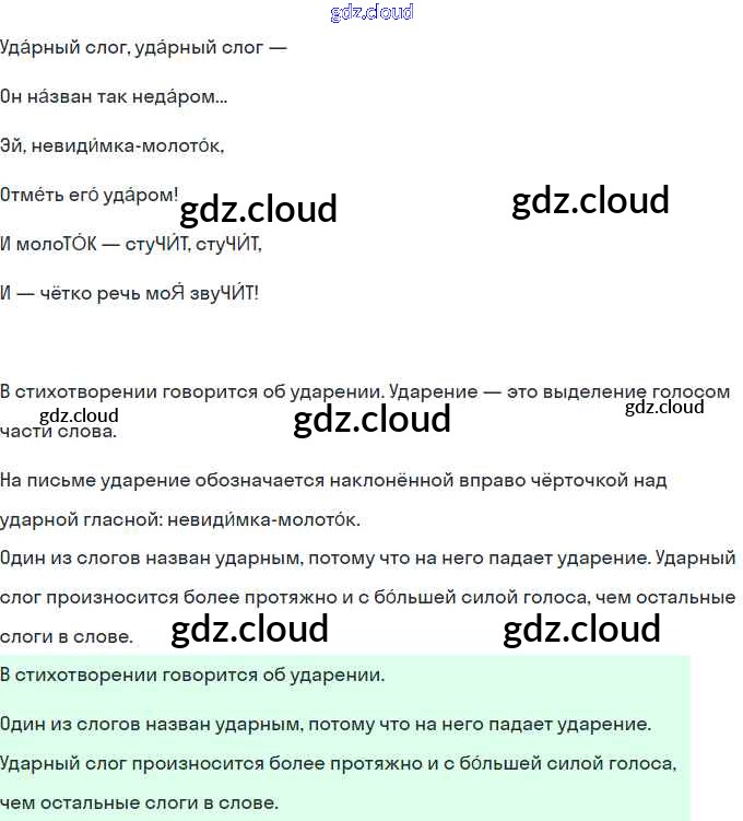 Ответы. Глава 4. Слово и слог. Ударение по Русскому языку 1 класс Учебник Канакина Школа России Просвещение