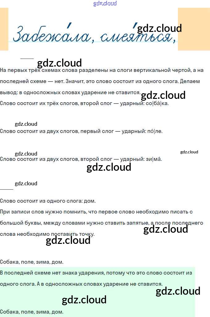 Ответы. Глава 4. Слово и слог. Ударение по Русскому языку 1 класс Учебник Канакина Школа России Просвещение