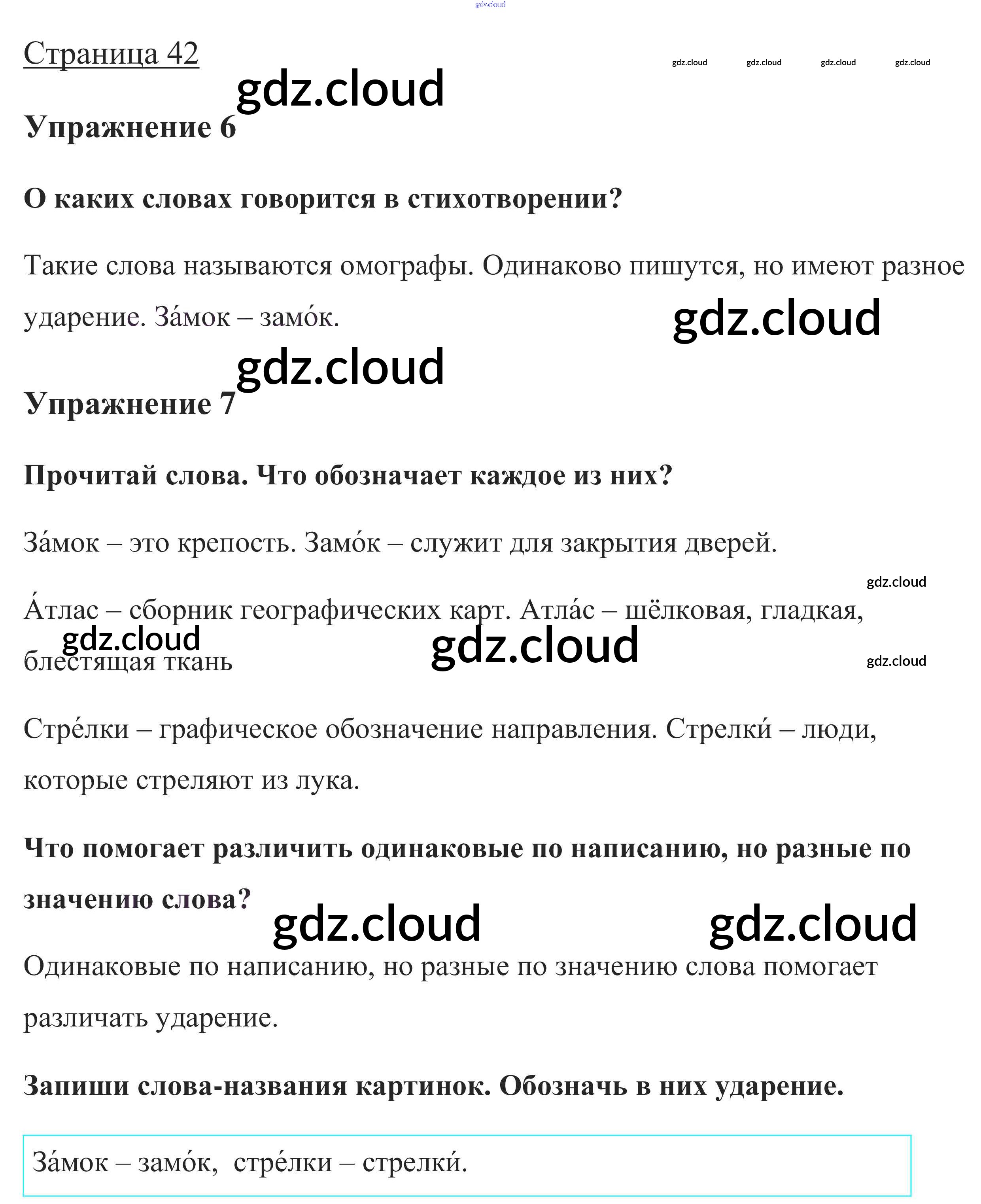 Ответ на задание стр. 42 Учебник Русский язык за 1 (первый) класс Канакина, Горецкий Школа России 2013