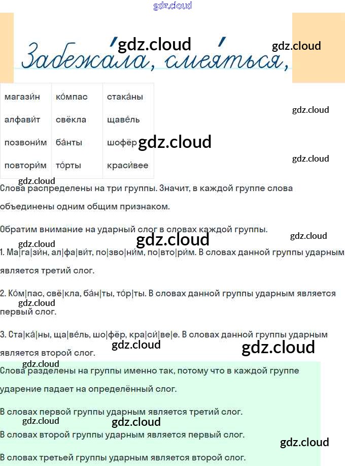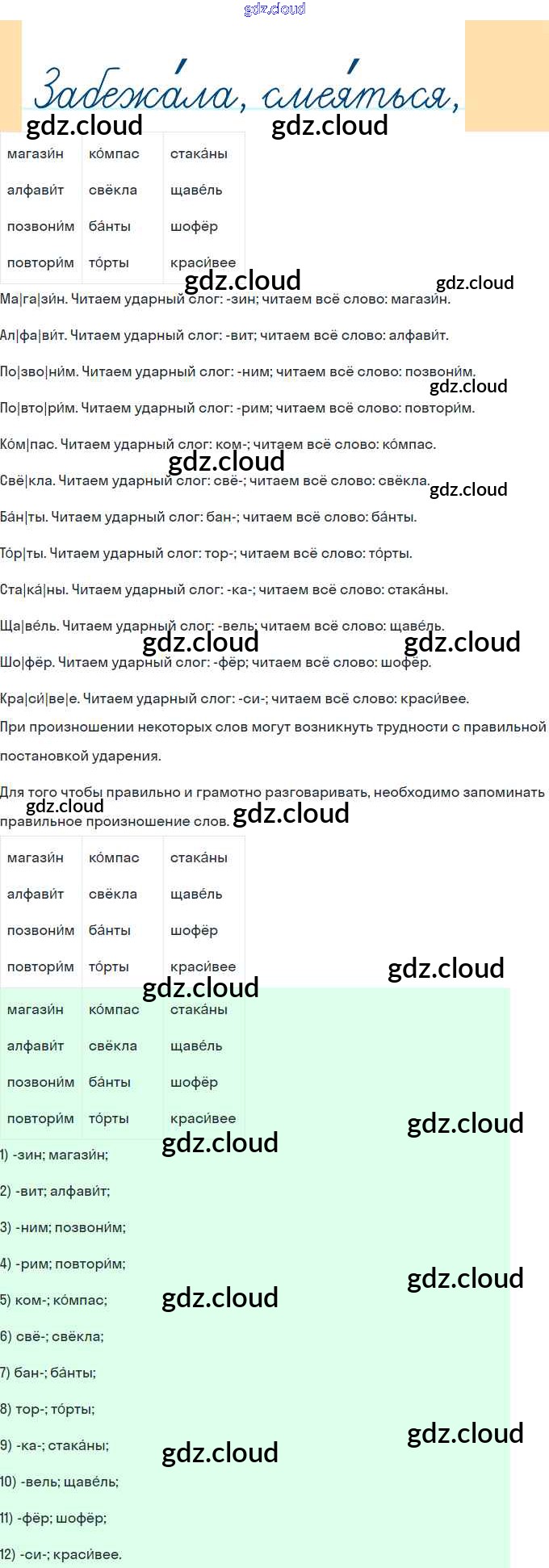 Ответы. Глава 4. Слово и слог. Ударение по Русскому языку 1 класс Учебник Канакина Школа России Просвещение