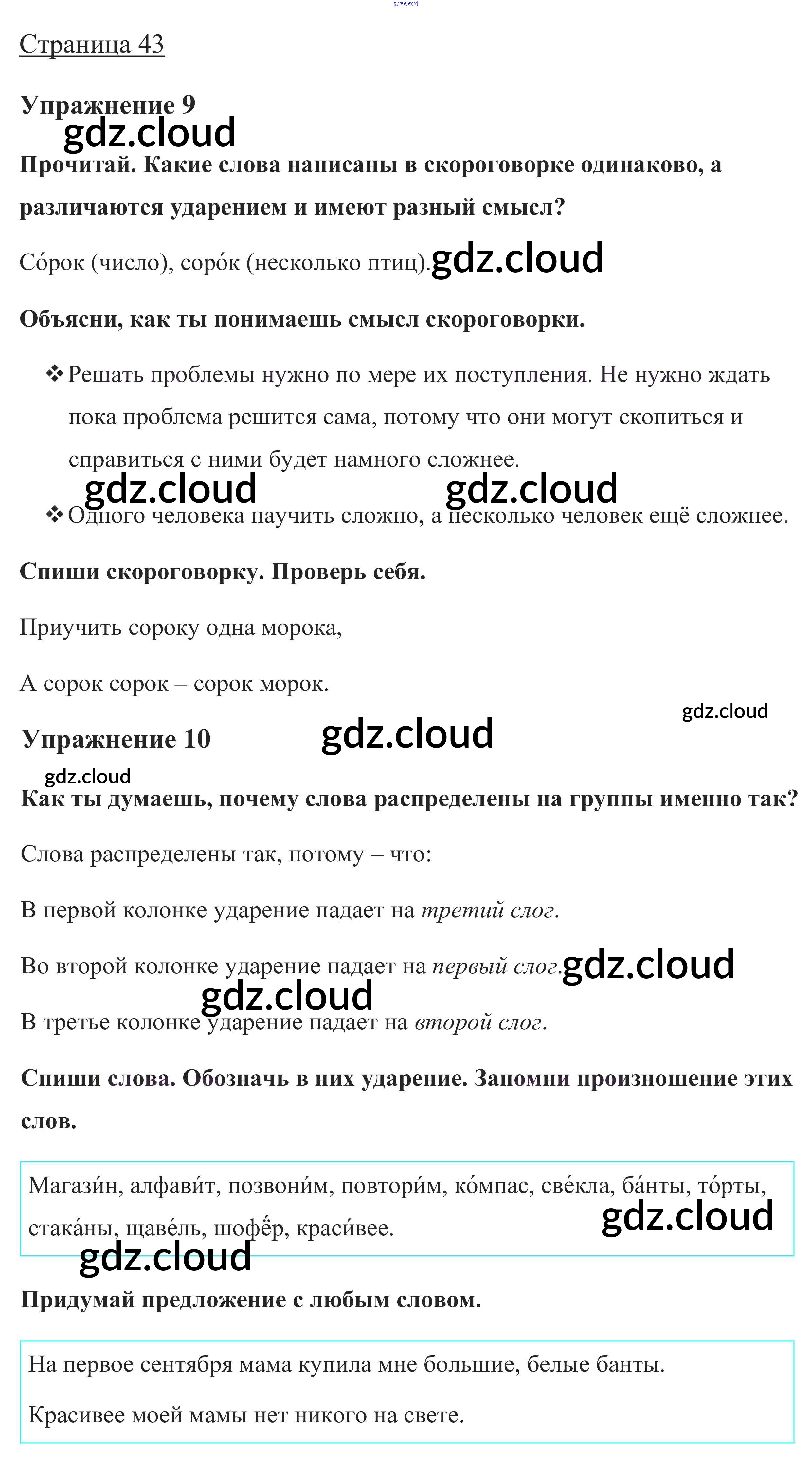 Ответ на задание стр. 43 Учебник Русский язык за 1 (первый) класс Канакина, Горецкий Школа России 2013