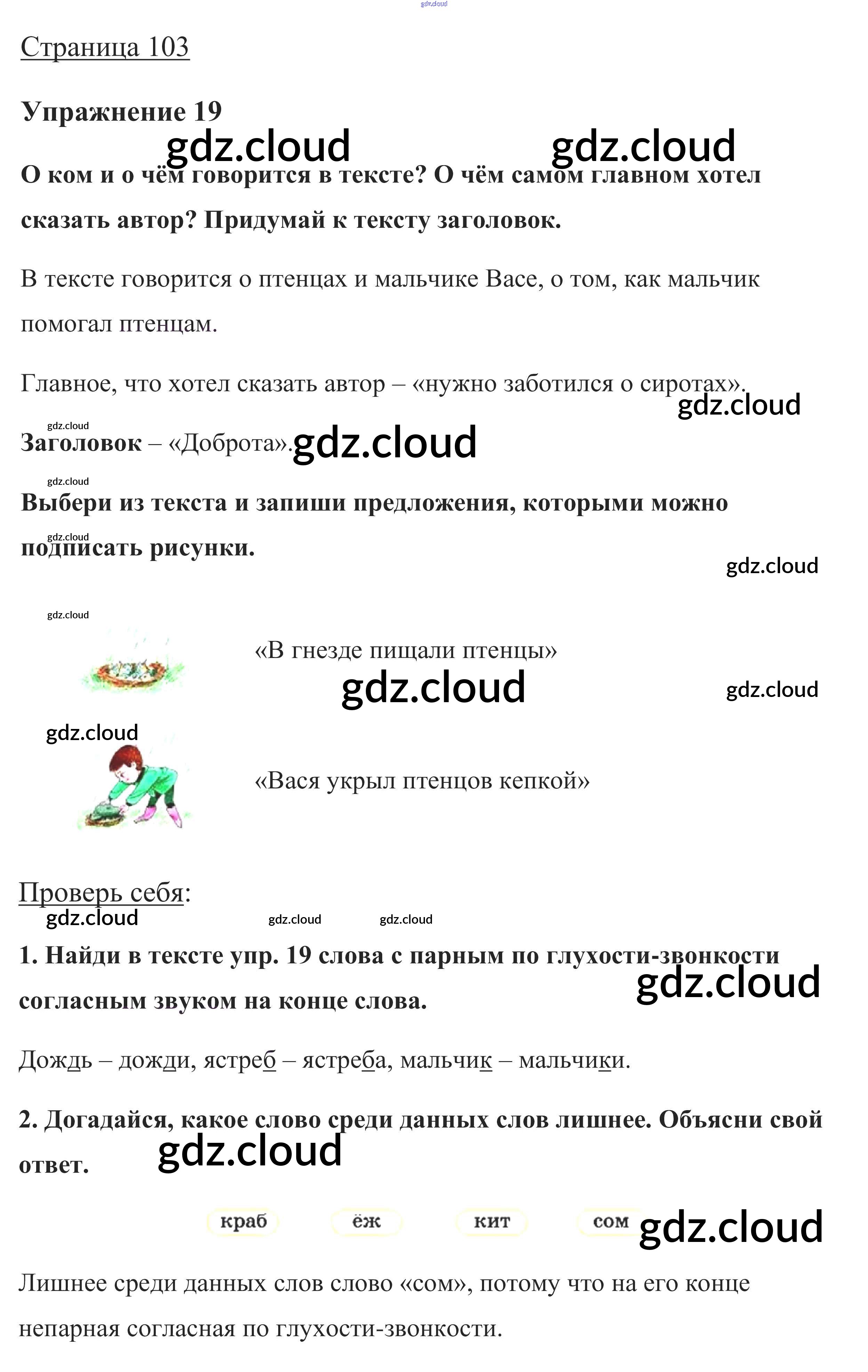 Ответ на задание стр. 103 Учебник Русский язык за 1 (первый) класс Канакина, Горецкий Школа России 2013