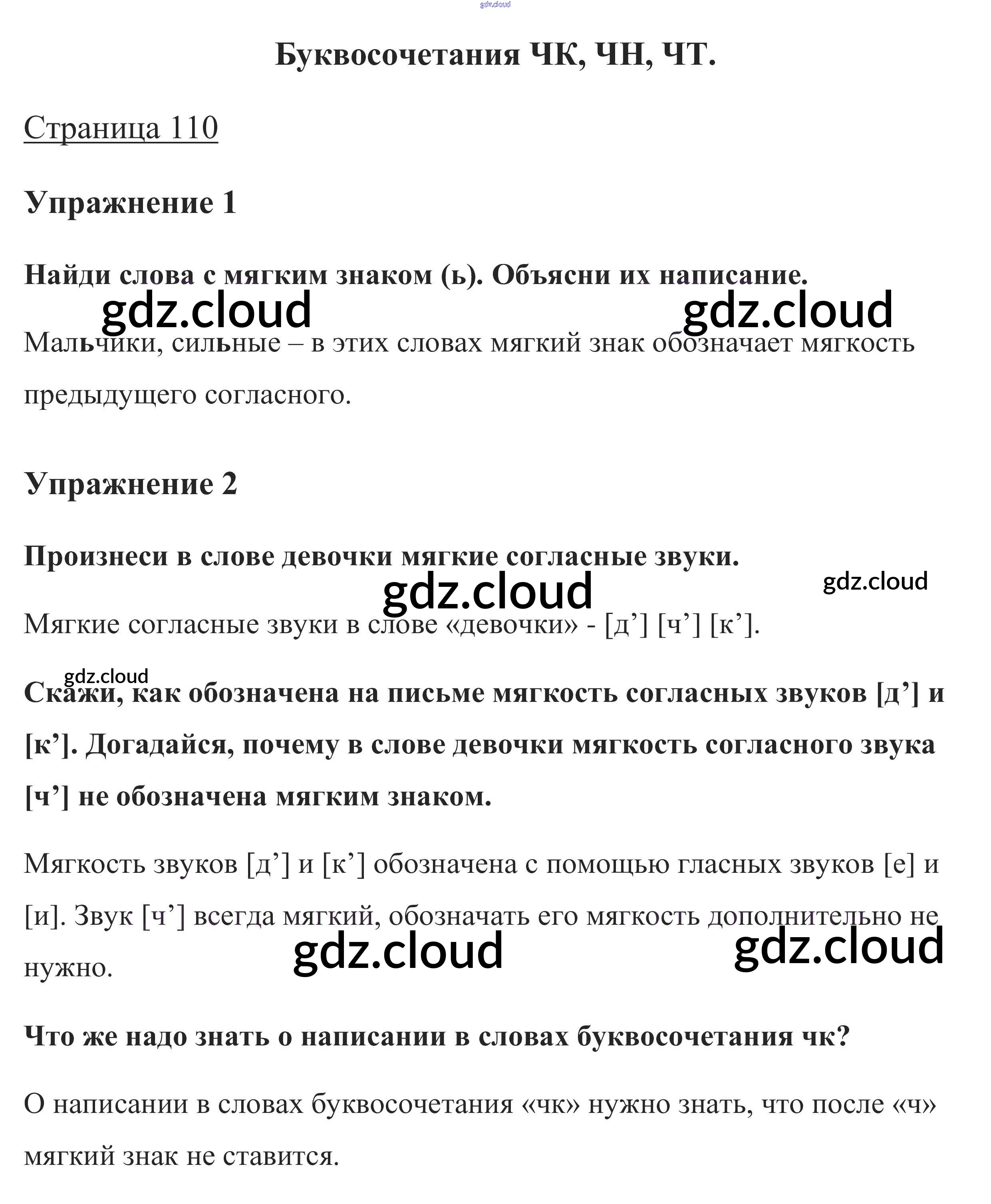 Ответ на задание стр. 110 Учебник Русский язык за 1 (первый) класс Канакина, Горецкий Школа России 2013