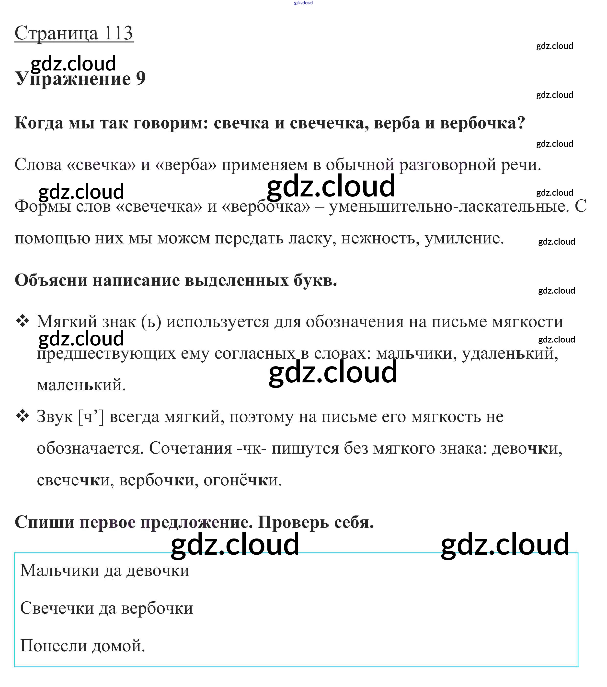 Ответ на задание стр. 113 Учебник Русский язык за 1 (первый) класс Канакина, Горецкий Школа России 2013