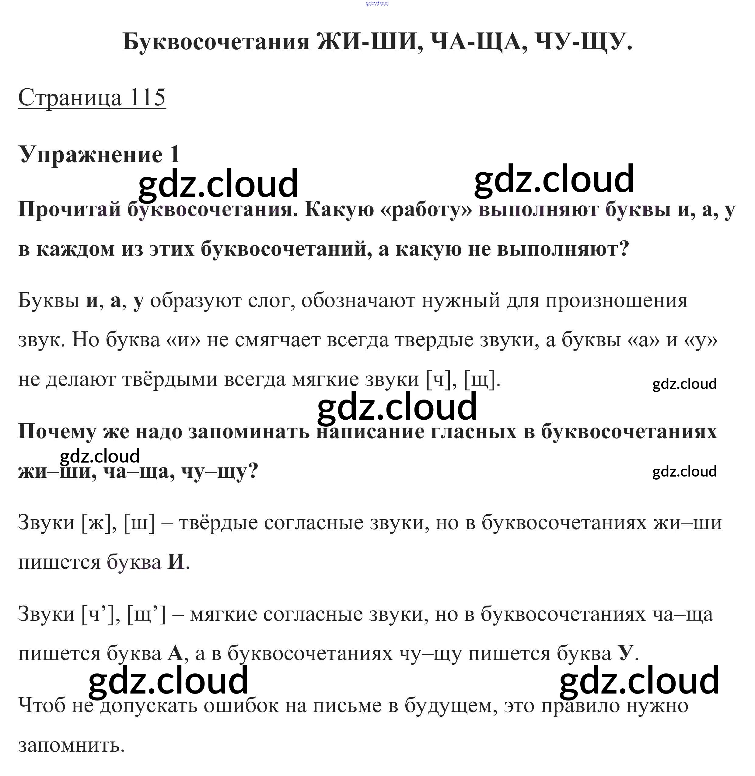 Ответ на задание стр. 115 Учебник Русский язык за 1 (первый) класс Канакина, Горецкий Школа России 2013