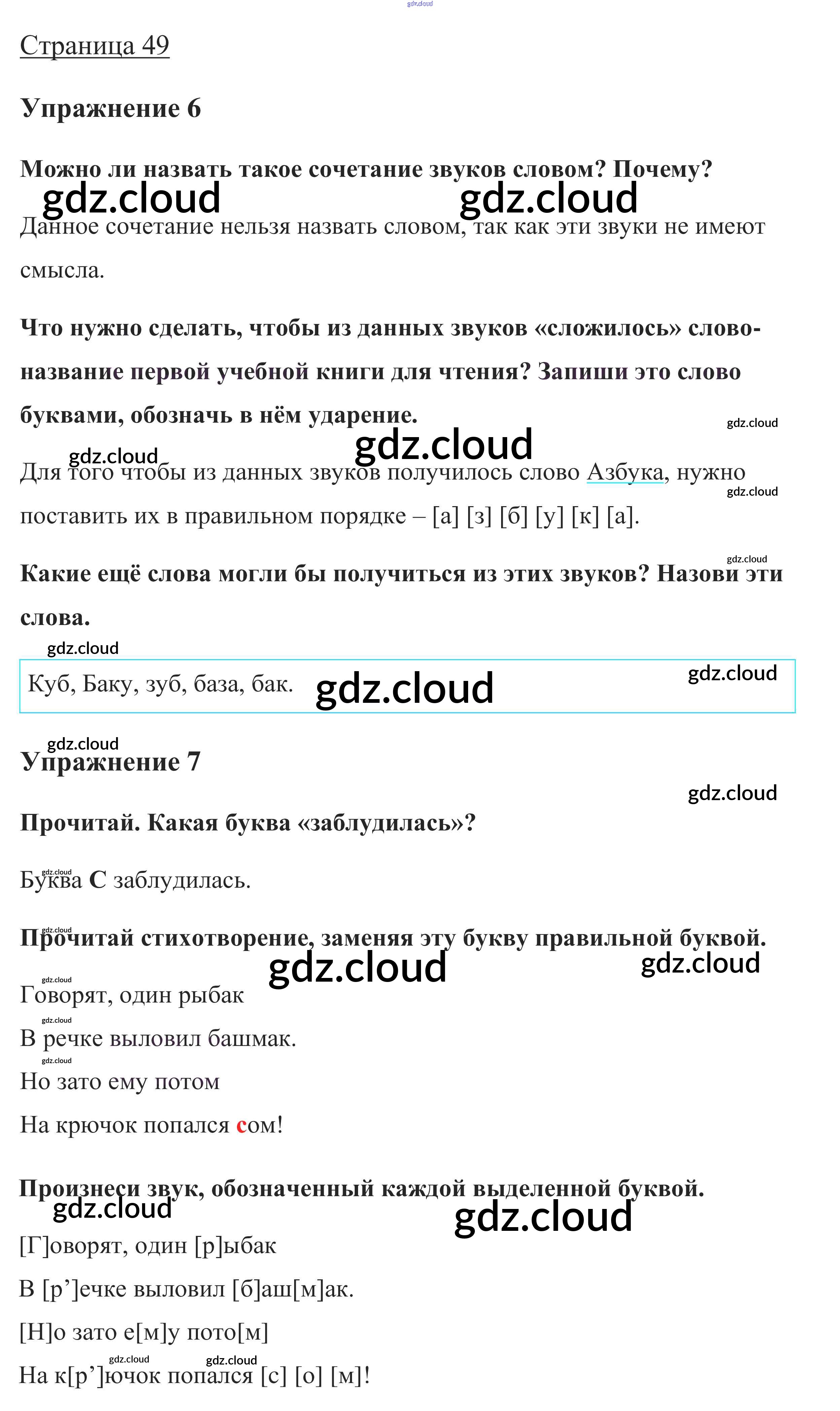 Ответ на задание стр. 49 Учебник Русский язык за 1 (первый) класс Канакина, Горецкий Школа России 2013