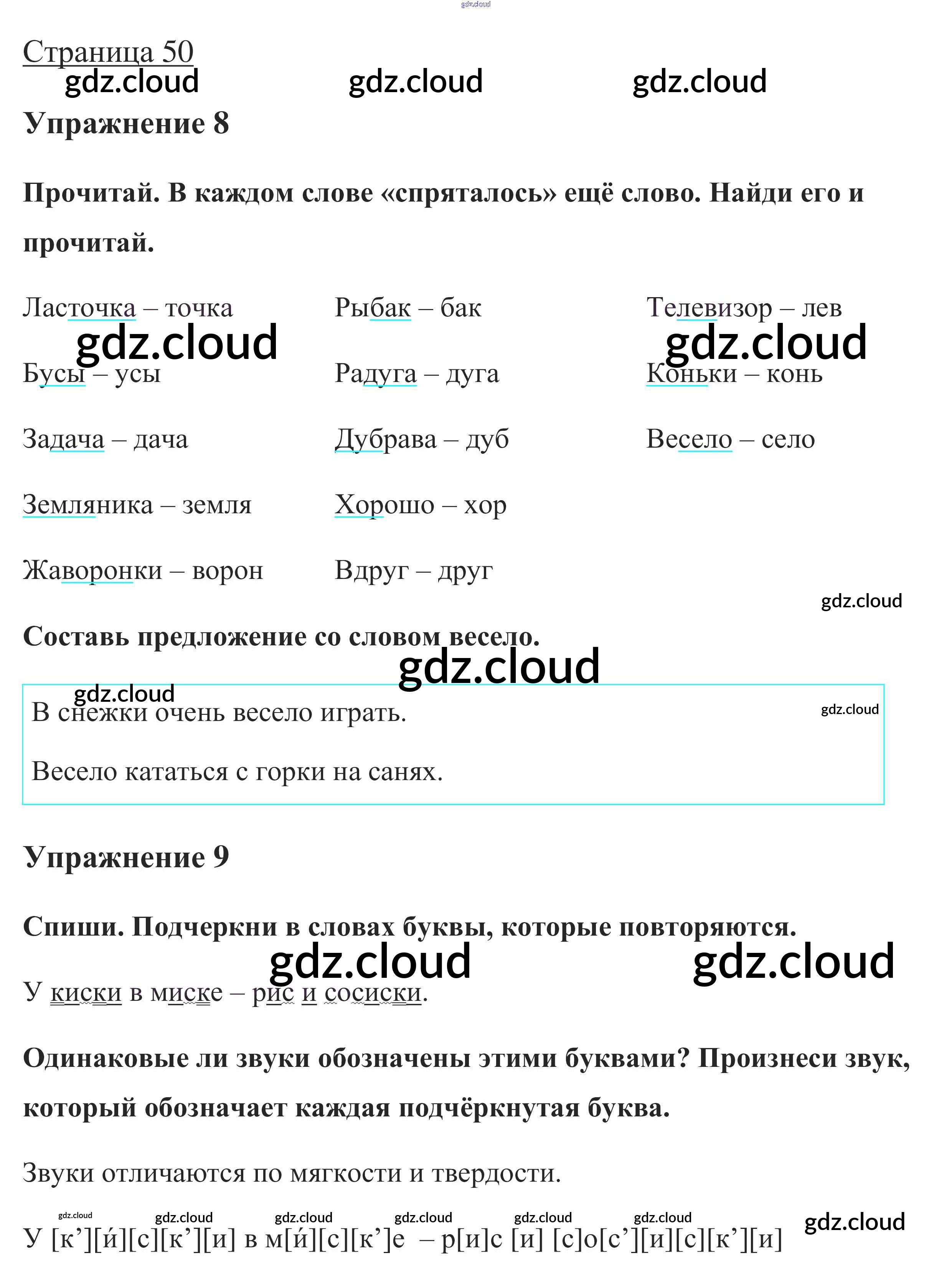 Ответ на задание стр. 50 Учебник Русский язык за 1 (первый) класс Канакина, Горецкий Школа России 2013