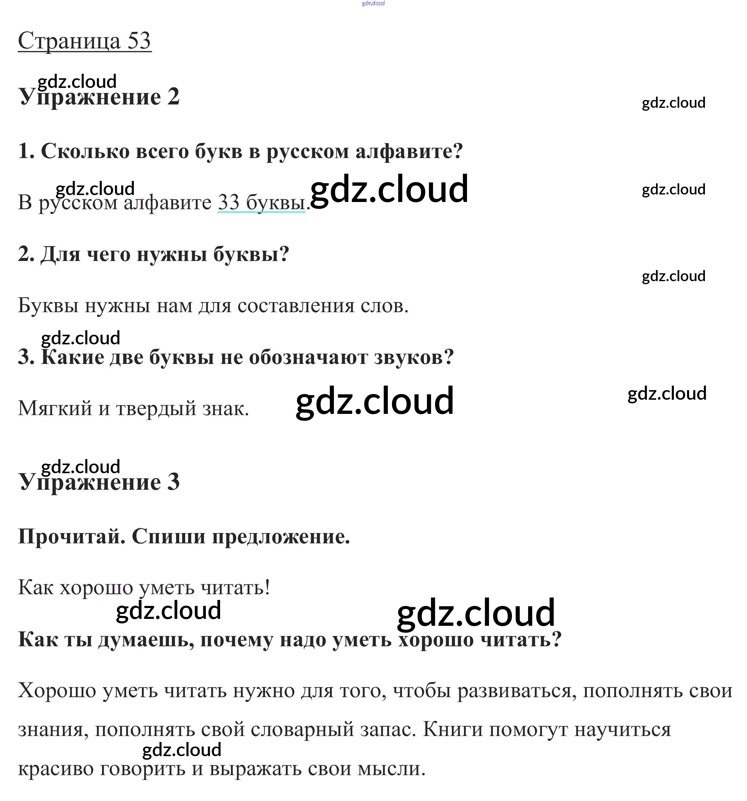Ответ на задание стр. 53 Учебник Русский язык за 1 (первый) класс Канакина, Горецкий Школа России 2013