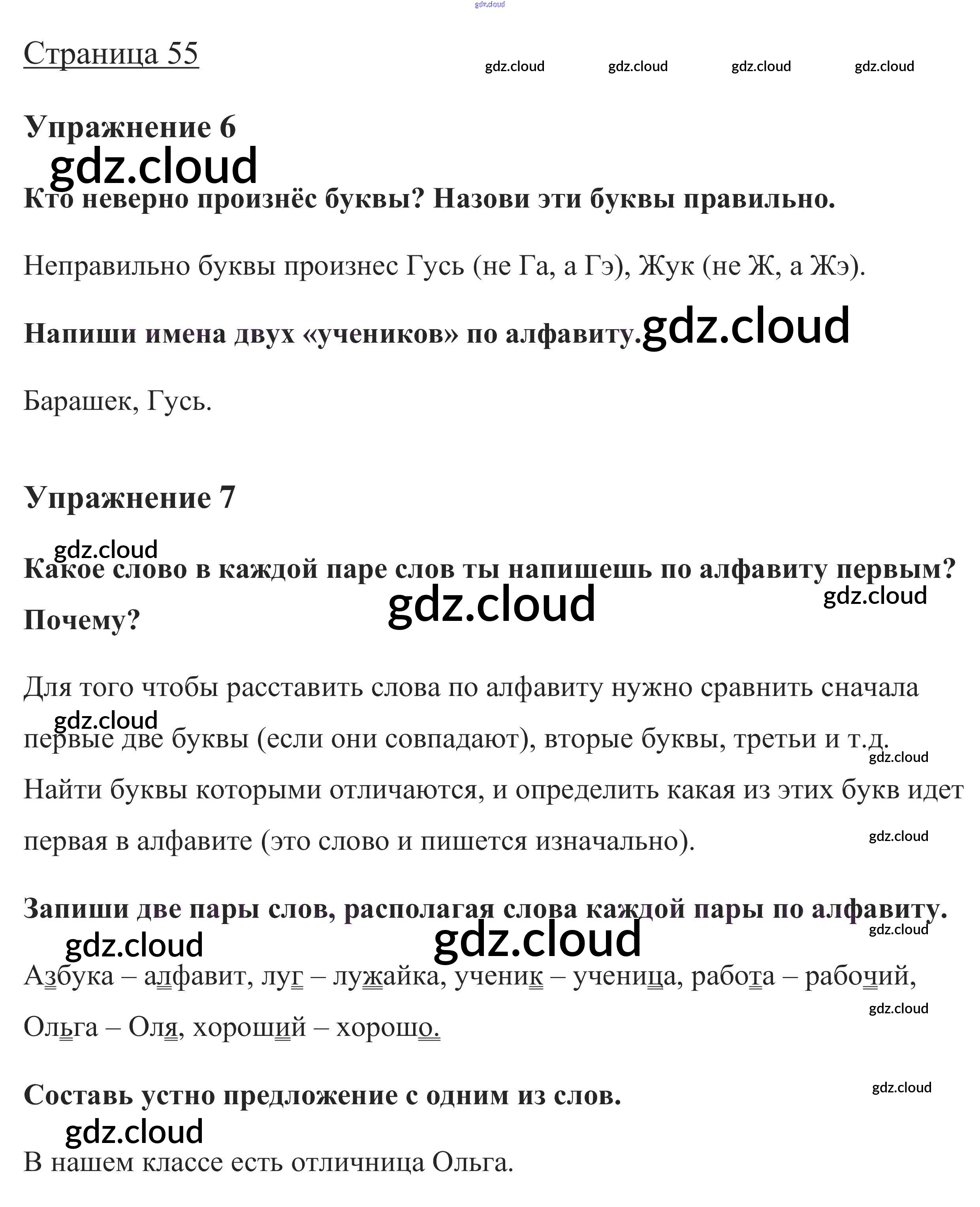 Ответ на задание стр. 55 Учебник Русский язык за 1 (первый) класс Канакина, Горецкий Школа России 2013
