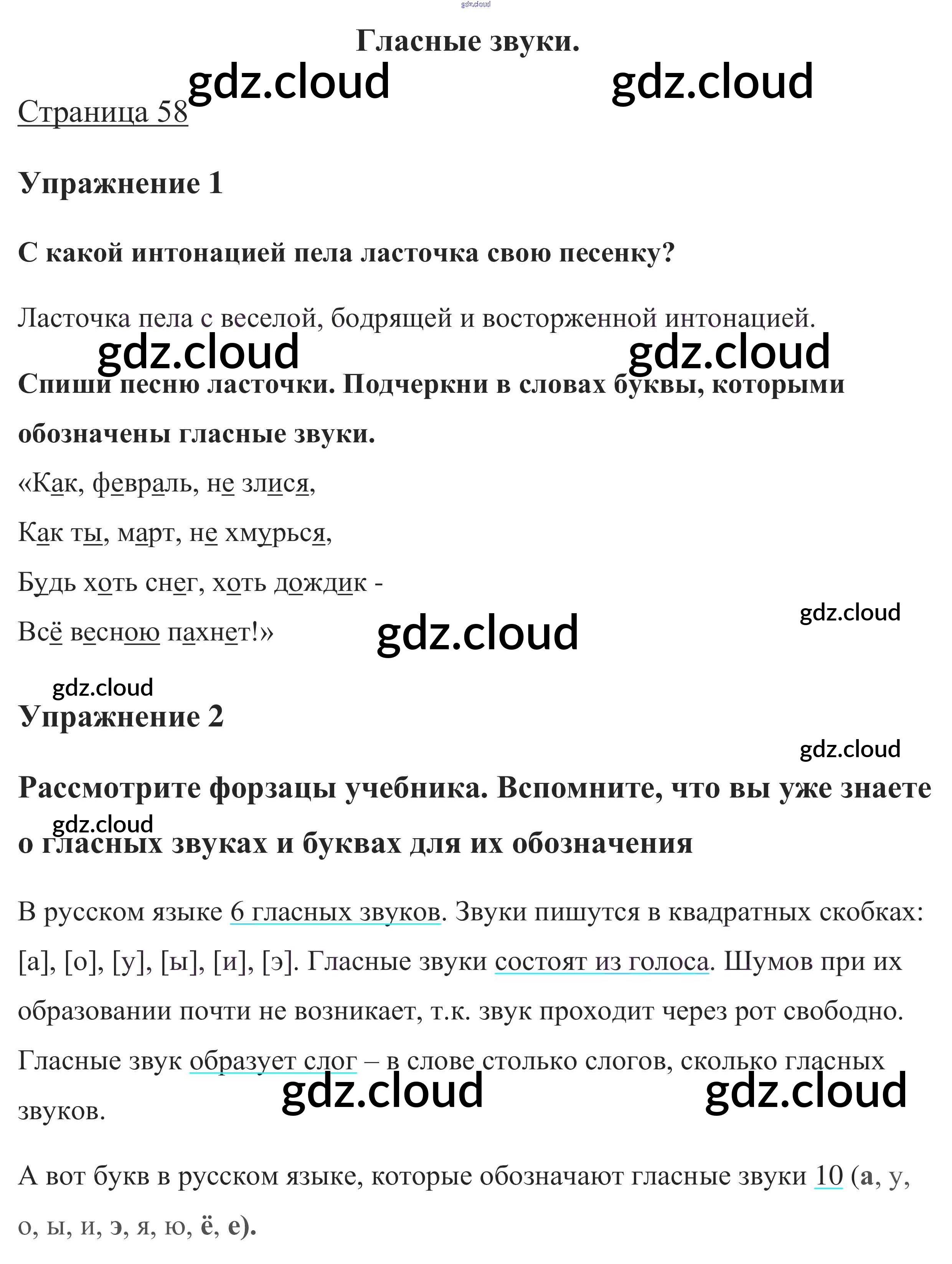 Ответ на задание стр. 58 Учебник Русский язык за 1 (первый) класс Канакина, Горецкий Школа России 2013